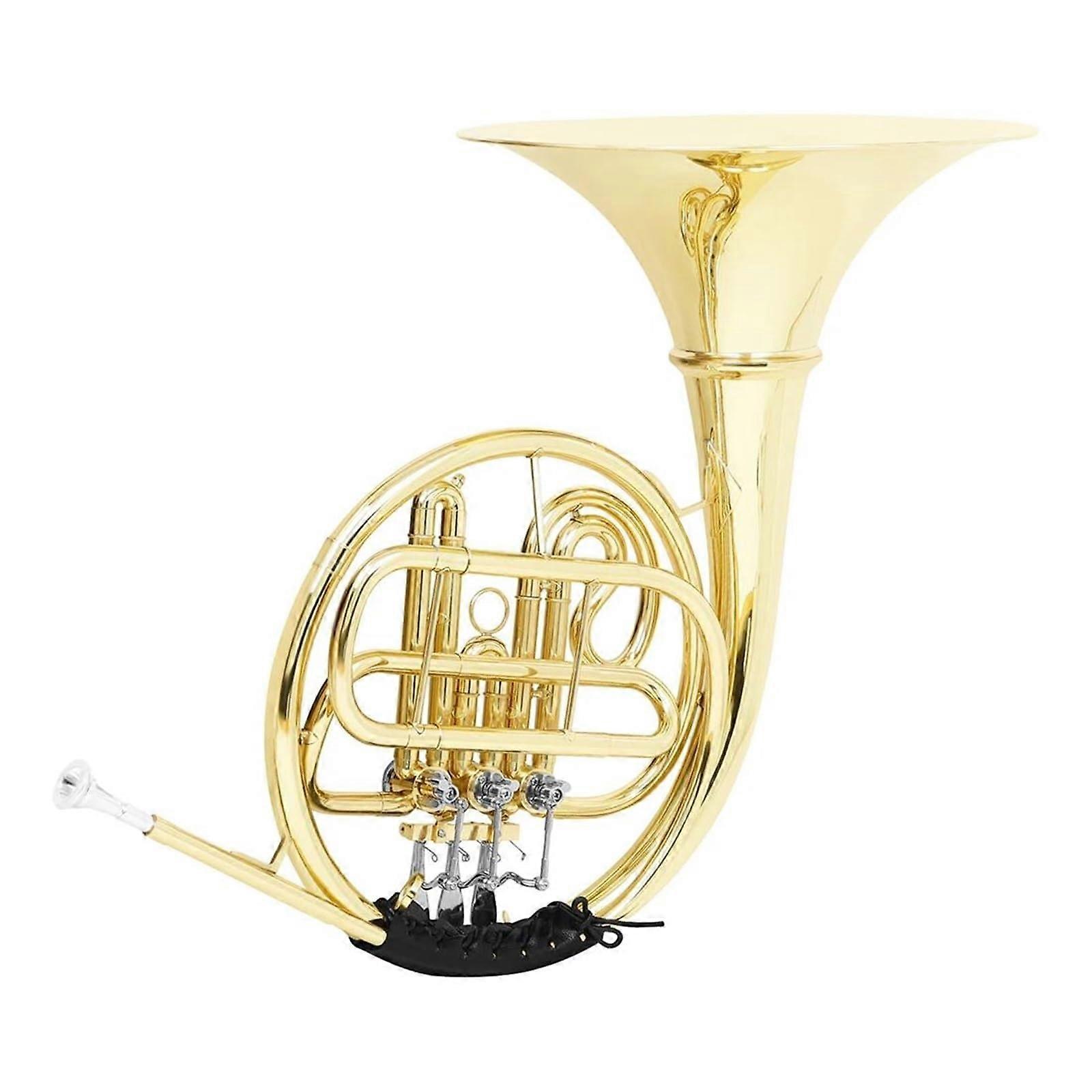 Bb Tone Brass French Horn with Case, 3 Keys Nickel Silver Plated, Golden for Beginners and Professionals