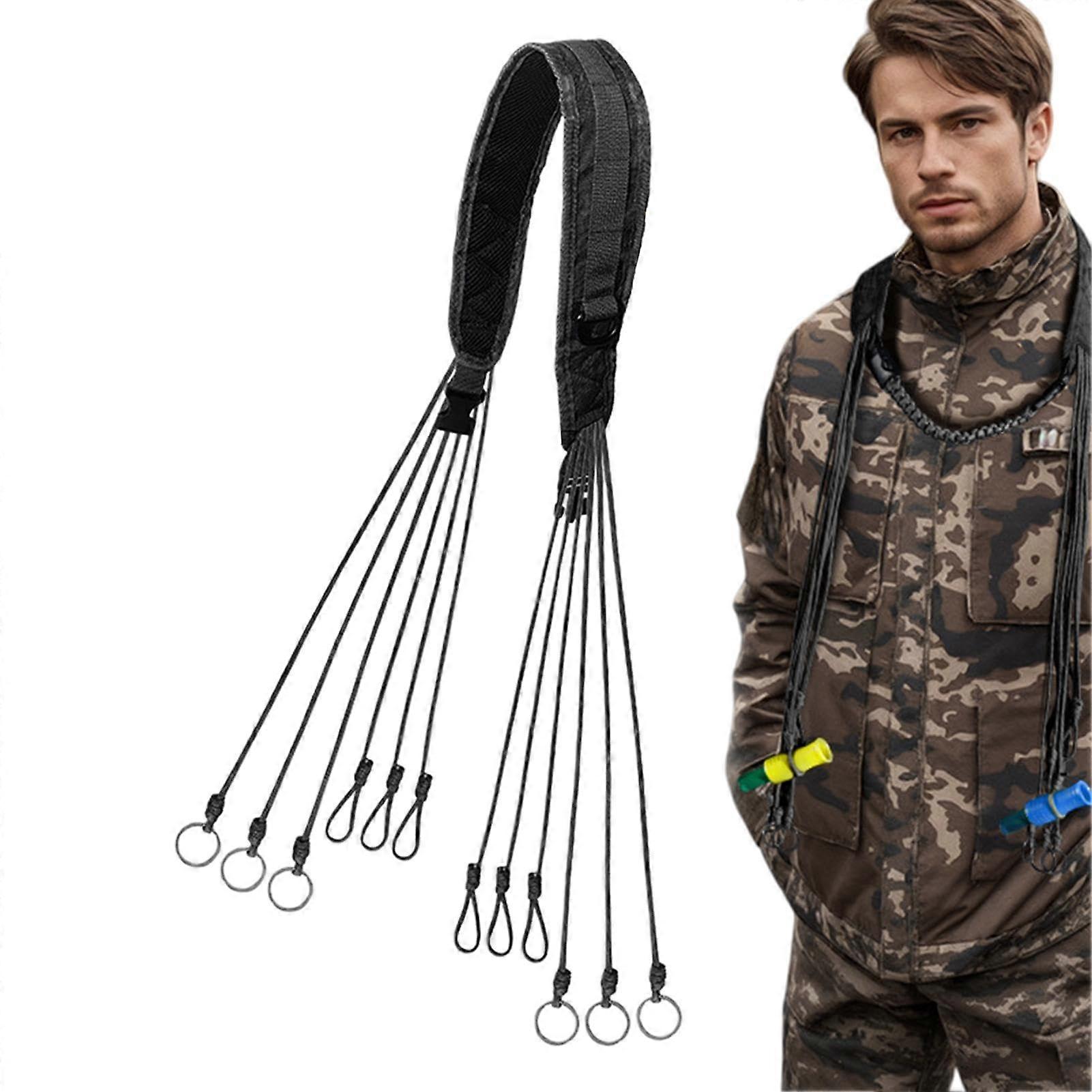 Duck Call Lanyard 12Ring Adjustable Neck Strap for Waterfowl Hunting, Durable MultiUse Game Call Holder