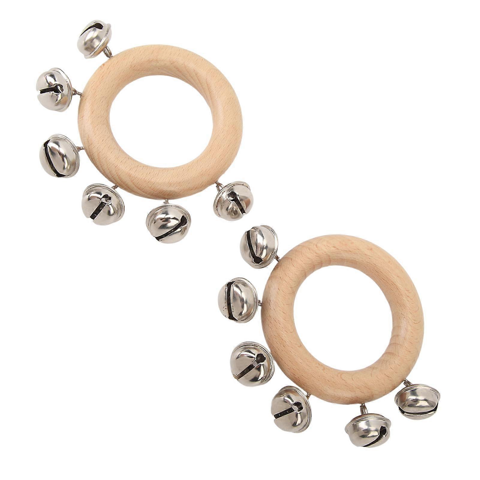 Hand Bell Rattle Set two round beechwood rattles with metal bells, designed for clear rhythmic accents and easy handling. Key benefits Adds rich, joyful sound to gatherings and musical settings, making rhythm parts and accents simple and effective. Durable materials and construction deliver reliable performance: beechwood handles for comfortable grip and metal bells that reduce internal friction for a clearer, longer lasting sustain. Compact and portable design makes them easy to hold, carry, and use on the go. Features Item type: Hand Bell Rattle Material: Beechwood handles and metal bells Shape: Round Diameter: Approx. 8 cm (3.1 in) Package includes: 2 x Hand Bell Rattle How it solves common needs Enhances group music making without complex equipment: a quick way to add rhythm and texture for singers, small ensembles, and classroom activities. Simple to use for all ages and skill levels: no setup required, instant sound by shaking or vibrating. Portable size solves the need for a convenient percussive option that travels well for rehearsals, parties, and performances. How to play Hold one rattle in each hand and shake or vibrate alternately to create a variety of rhythmic accents and patterns. Experiment with tempo and intensity to vary volume and sustain. Practical use scenarios Music classroom: Use as a rhythmic teaching tool for beat, tempo, and ensemble coordination in group lessons. Parties and small performances: Add lively accents during songs, singalongs, or informal concerts at gatherings and KTV events. Dance and stage shows: Provide clear percussive cues and accents for dancers or small bands during live performances. Compact, dependable, and easy to play, this set of two hand bell rattles is a practical addition for educators, performers, and anyone seeking a simple percussive instrument.