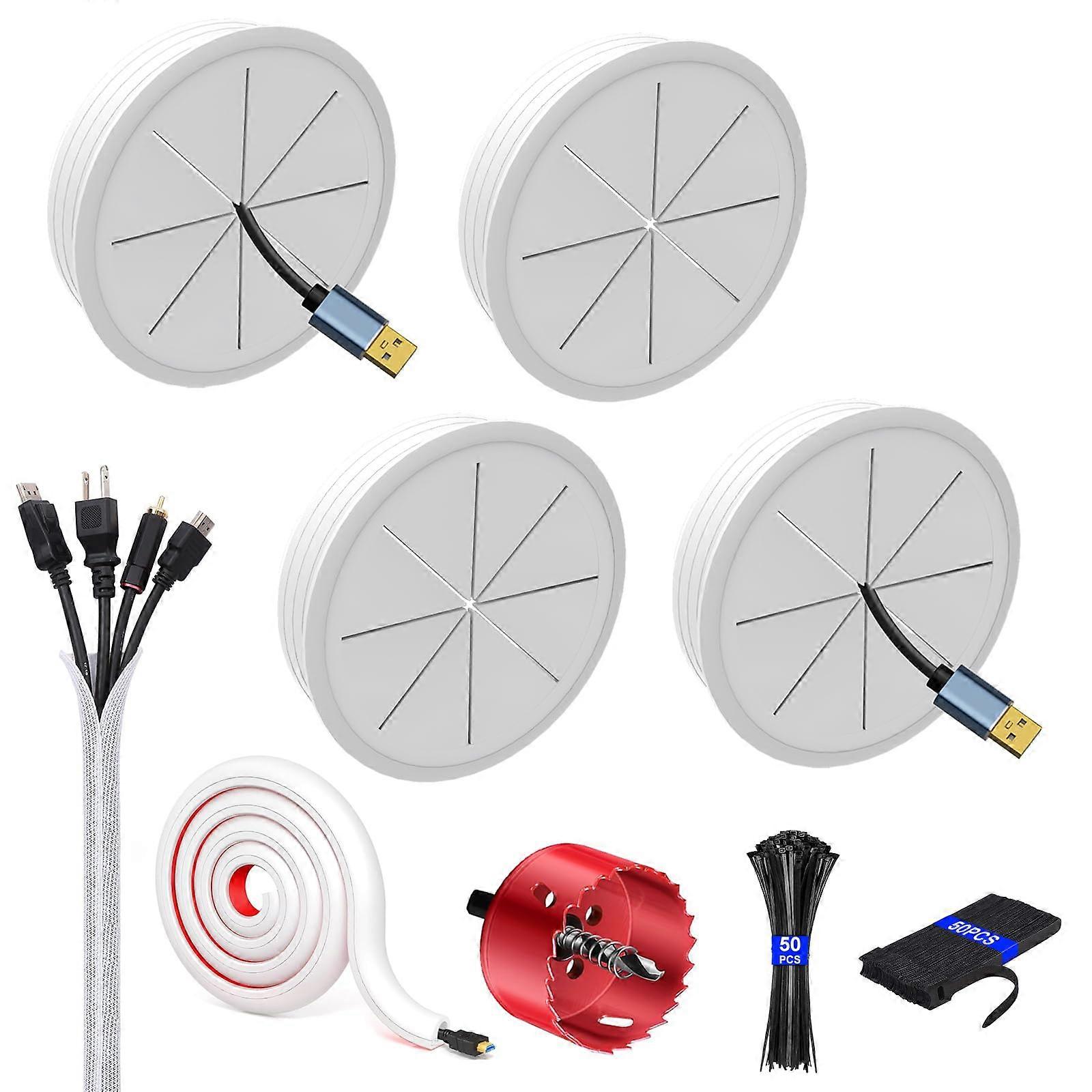 Cable Management Kit with Hole Saw 60mm Grommet Tube and SelfAdhesive Duct for Wall TV and Desk