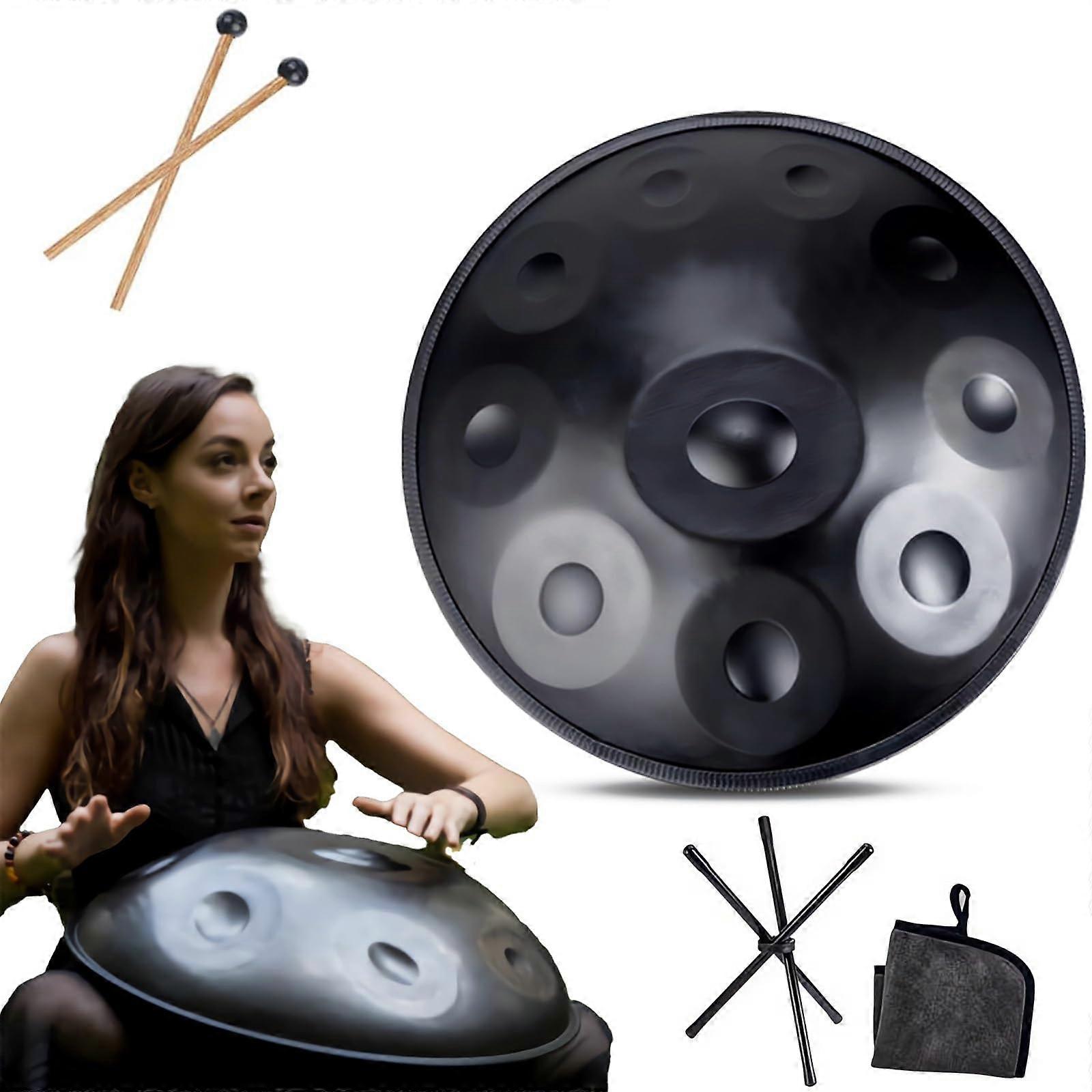 22 Inch D Minor Handpan Drum 440Hz Black 10 Note Hand Hammered Steel Tongue Drum for Sound Healing