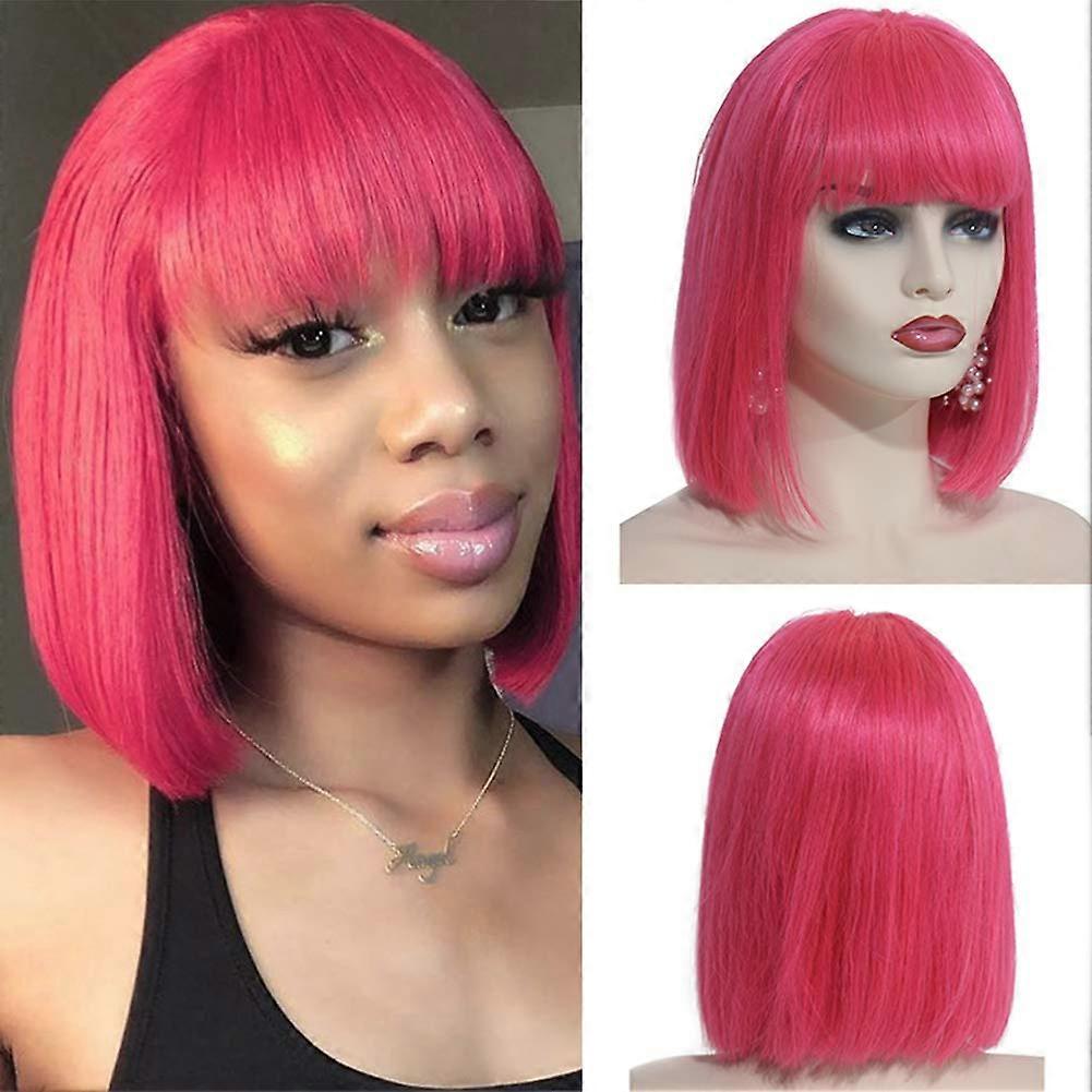 Red Virgin Human Hair Bob Wig Lace Front Pre Plucked with Bangs 180 Density 12inch Straight