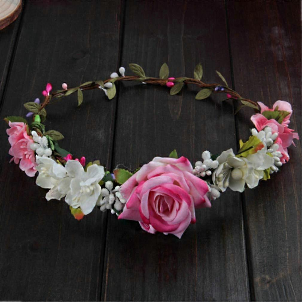 Floral Hairband Pink Flower Crown Headband for Wedding Festivals Girls Women Handmade Rose Garland