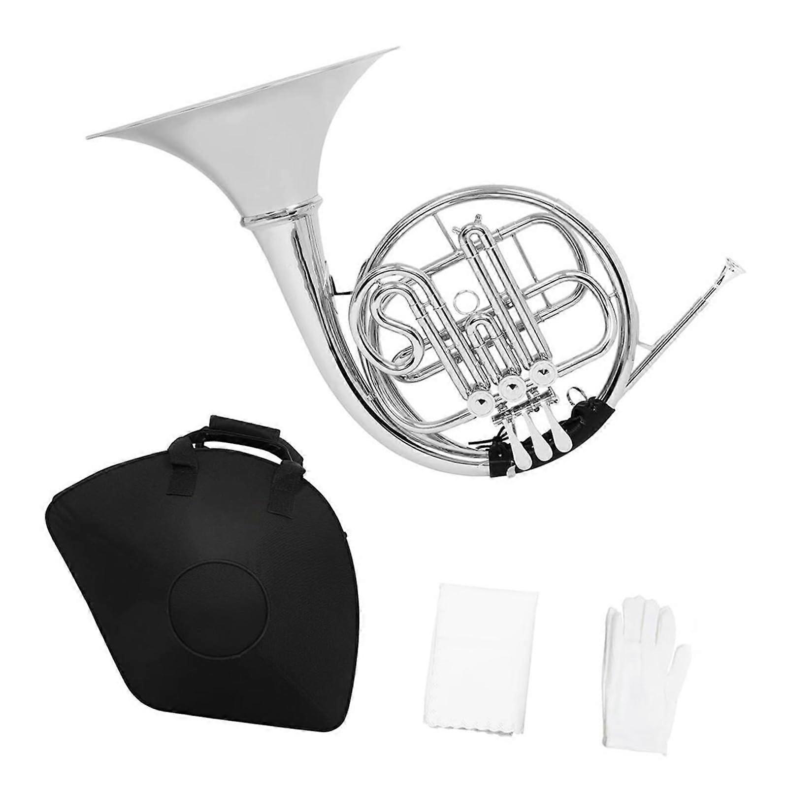 Bb French Horn for Beginners Nickel Plated Brass with Case, 3 Keys, Clear Bb Tuning, Enlarged Bell