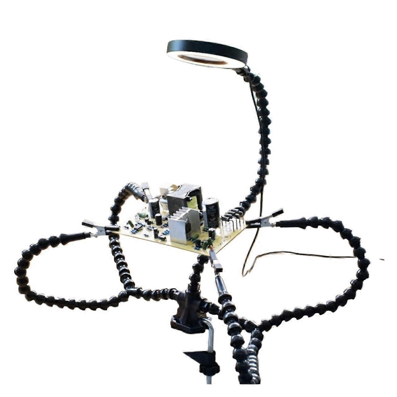 Soldering Helping Hands Station with 3X Magnifier, LED Light, 6 Arms, Adjustable Gooseneck and Non‑Slip Base
