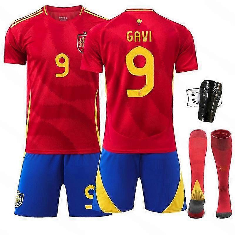 Football Uniform Set Design Number 9 Red Team Style Jersey Shorts Socks and Protective Gear Set