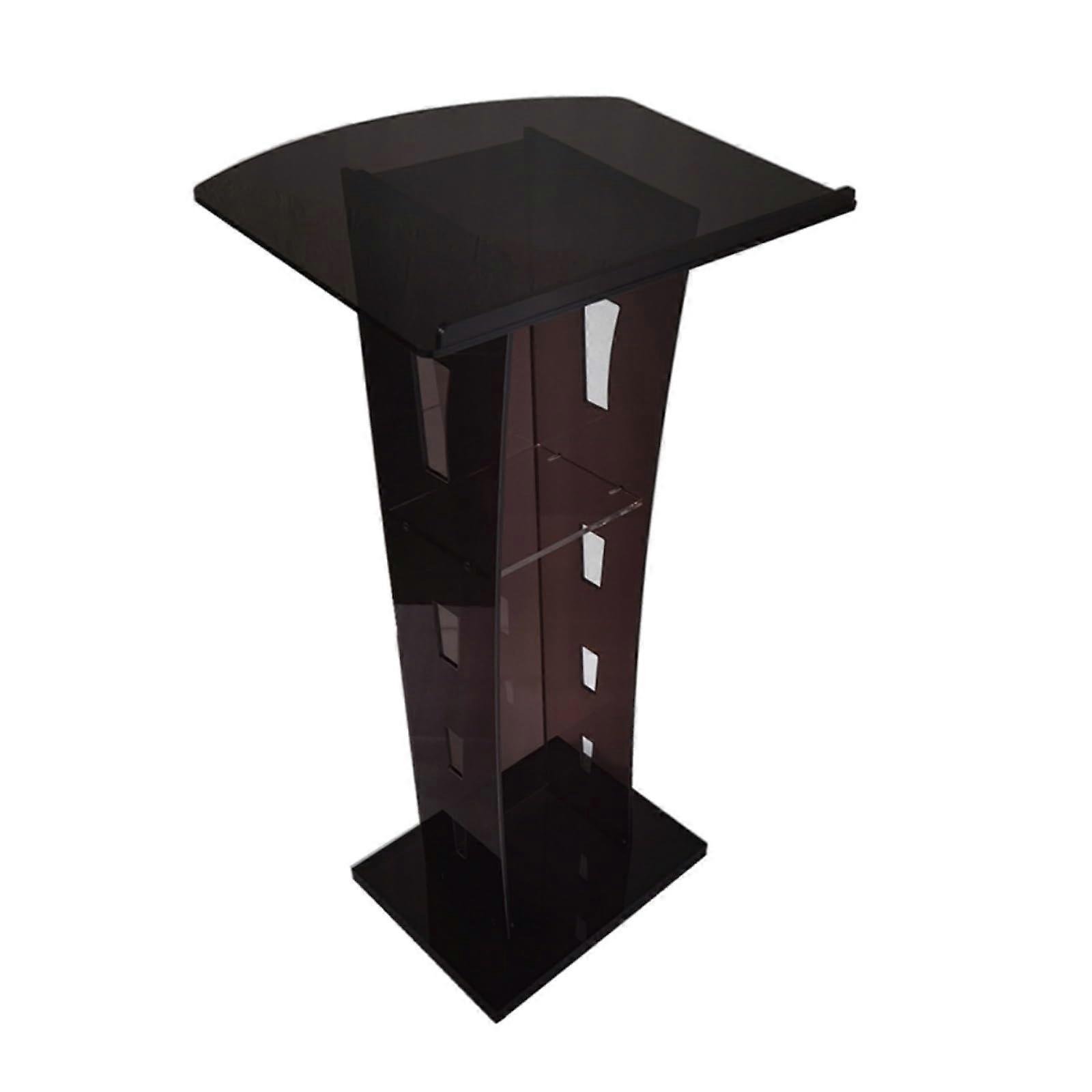 Acrylic Podium Stand designed for clear, stable presentations and easy transport Key benefits Keeps materials organized and secure: the spacious tabletop with a sloping and raised baffles prevents laptops, notes, and books from sliding off so you can concentrate on presenting. Strong and stable performance: constructed from sturdy acrylic board, the stand supports up to 66 lbs without wobble, accommodating laptops, projectors, stacks of documents, and other presentation equipment. Portable and quick to set up: ships with all tools and instructions for assembly and disassembly in under 20 minutes, making it simple to move between venues and store when not in use. Large work surface and extra storage: the generous desktop plus secondary storage areas provide room for drinks, media devices, and reference materials within easy reach. Features and specifications Material: durable acrylic board for a professional, modern appearance and solid support Load capacity: supports up to 66 lbs Overall size: 24 inches L x 18 inches W x 43 inches H (60 x 45 x 110 cm) Design elements: smooth tabletop, sloping surface, and baffles to secure items; additional storage area for accessories Assembly: tools and instructions included, quick assembly and disassembly in less than 20 minutes Portability: lightweight components and compact storage when disassembled Practical use scenarios Classroom or lecture hall: set up for lesson plans, lecture notes, and a laptop for slides, with room for handouts and a drink. Church or community presentations: use as a pulpit for sermons or announcements, keeping sermon notes and media devices secure and accessible. Meetings, conferences, or recitals: place sheet music, speeches, or presentation materials on the sloped surface while peripheral devices or items fit into the storage area. Why choose this podium Combines a large, secure work surface with a stable acrylic construction to support common presentation equipment. Portable design and fast assembly reduce setup time and make it suitable for rotating venues and events. Clear, functional layout keeps essential materials organized and within reach during presentations.