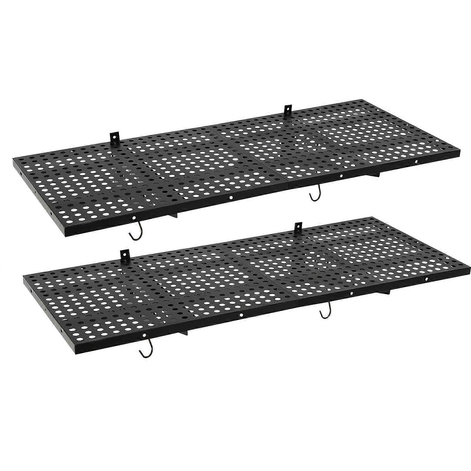 Heavy Duty Garage Wall Shelves 20x48 Metal Storage with Hooks Ventilated Grid Design Black