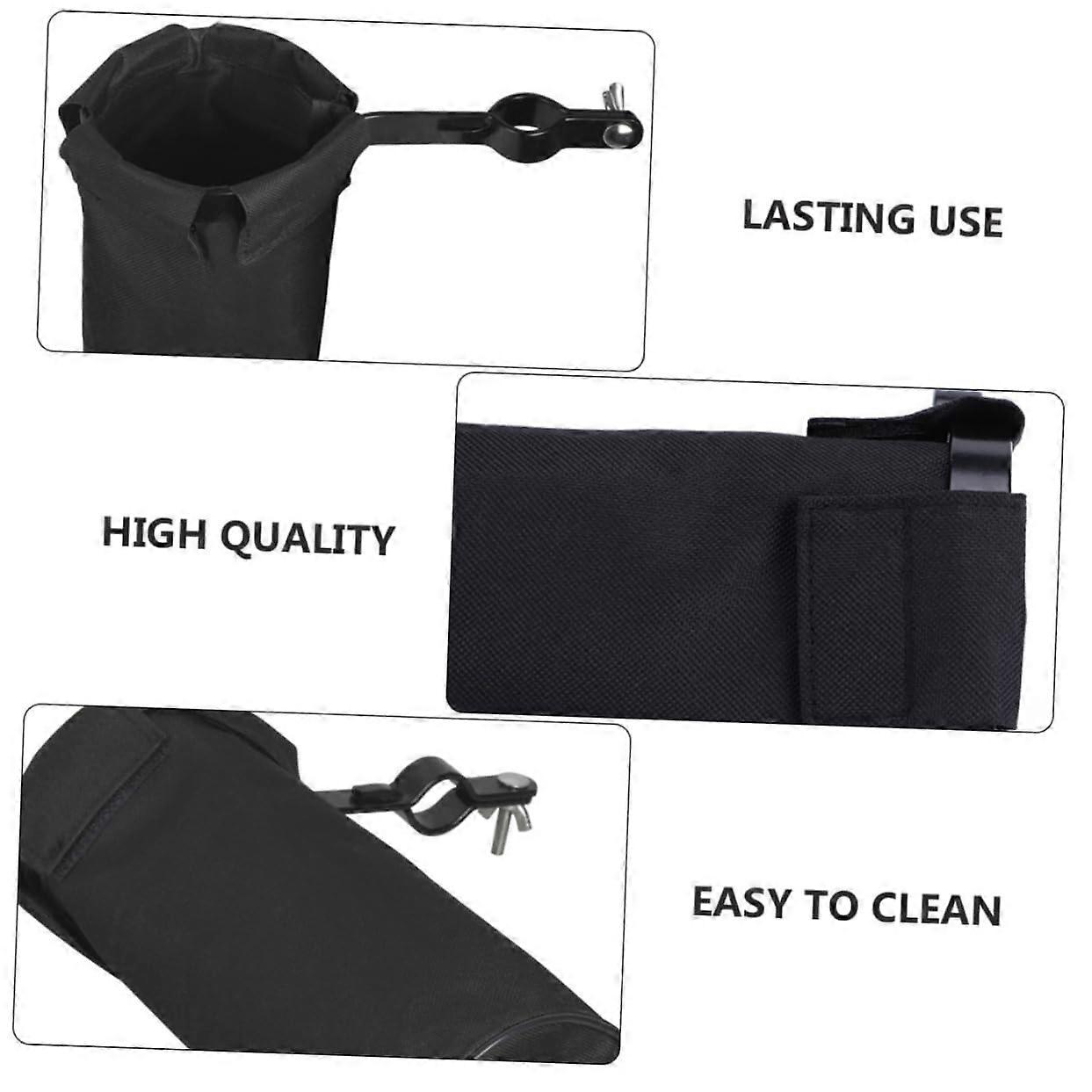 Drumstick Bag and Holder A portable drumstick pouch designed for drummers who need organized, reliable storage on the road, in the studio, and at rehearsals. Key benefits Portable and large capacity: Holds multiple pairs of drumsticks, mallets, and brushes so you have spare sticks ready whenever you need them. Secure attachment: Adjustable screw lets the pouch mount to a wide range of drum stands for easy access during playing. Durable, water resistant construction: Multiple layer sewn Oxford cloth provides strength and a water resistant barrier to protect sticks from moisture and wear. Long lasting hardware: Metal clip is durable and resists rust for dependable performance over time. Fast access and organization: Separate compartments and an open design make it easy to remove and sticks between songs or during practice. Function and compatibility Designed to fit most drum stands using the included adjustable screw mount. Large capacity pouch accommodates standard drumsticks and common accessory sizes. Multi layer sewing increases durability and helps the pouch keep its shape under regular use. Practical use scenarios Live performance: Clamp the pouch to your hi hat or snare stand so replacement sticks are within reach during a set. Rehearsal and studio sessions: Keep multiple types of sticks and brushes organized and protected from humidity while moving between rooms or venues. Lessons and practice: Carry a full set of sticks and accessories to lessons or group practice in a compact, easy to attach bag. What you get A portable, large capacity drumstick pouch made from Oxford cloth with multi layer sewing for durability, a rust resisting metal clip, and an adjustable screw mount for attaching to various drum stands.