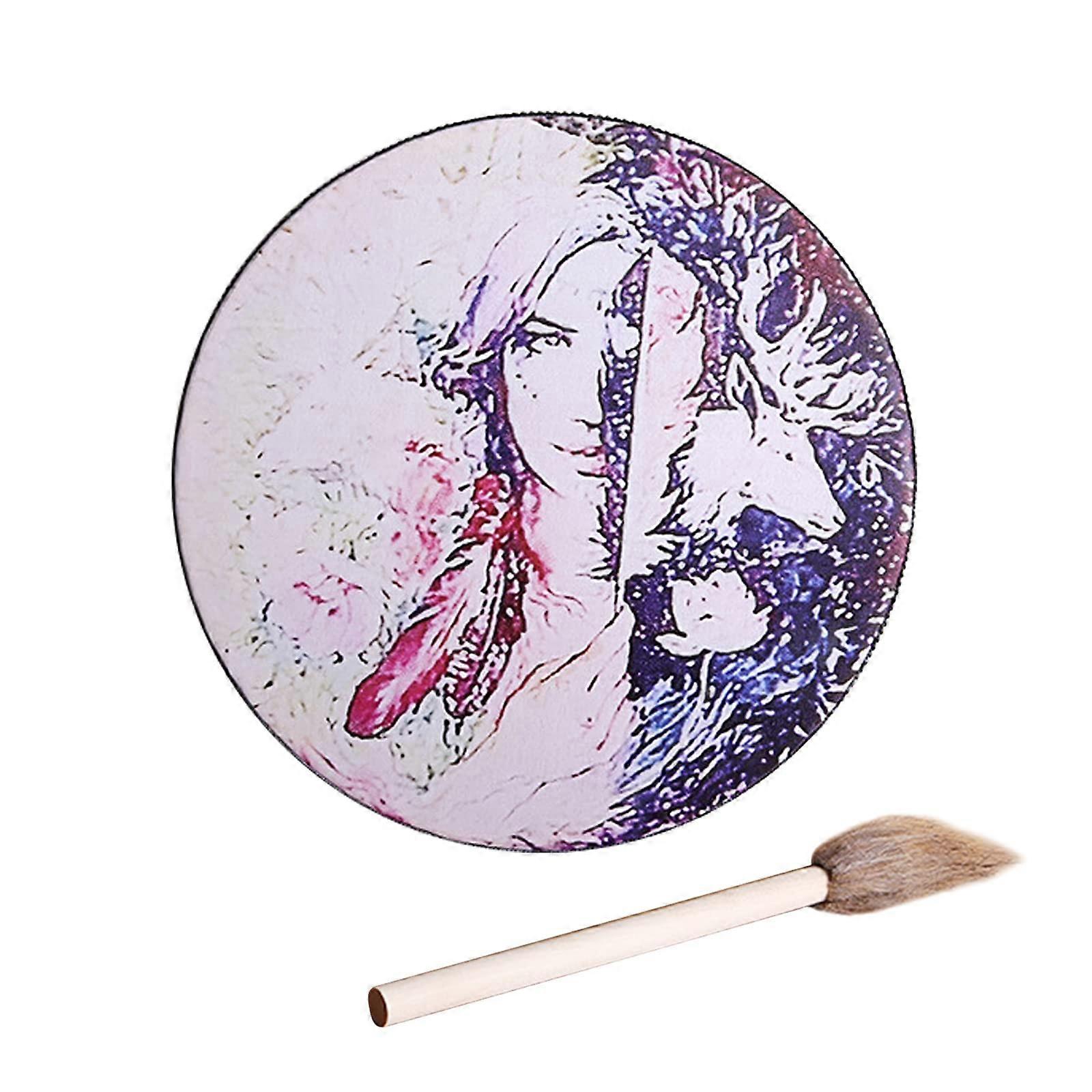 Shamanic Hand Drum Color: elves Product overview A handcrafted shamanic hand drum made from wood and synthetic materials. Compact and lightweight, it delivers clear, resonant tones and is suitable for musical performance, ritual use, or as a decorative piece. Key benefits Durable construction: Wood and synthetic materials provide strength and a smooth, comfortable surface that resists wear. Ready to play: Includes a wooden drum stick for immediate use. Can also be played by hand for a softer, more tactile sound. Safe to handle: Edge ribbons protect the hands during play and help preserve the drum and stick. Distinctive sound: Hollow back and framed design create rich resonance. Tapping different areas produces a range of tones. Versatile use: Works equally well as an instrument for group or solo play and as a visual accent in a home or studio. Specifications Material: Wood plus synthetic Color: elves (as pictured) Diameter: approximately 25 cm / 9.84 in Thickness: approximately 5 cm / 1.97 in Package weight: approximately 330 g Package contents: 1 shamanic drum, 1 drum stick Practical uses Circle or community drumming: Portable and easy to handle for shared musical sessions. Performance and recording: Produces clear, resonant tones useful for live sets or studio work. Home and studio decor: Retro framed design and hollow back make a striking wall display or tabletop accent. Notes Allow 1 to 2 cm variation due to manual measurement. Actual color may vary slightly from images depending on monitor settings.