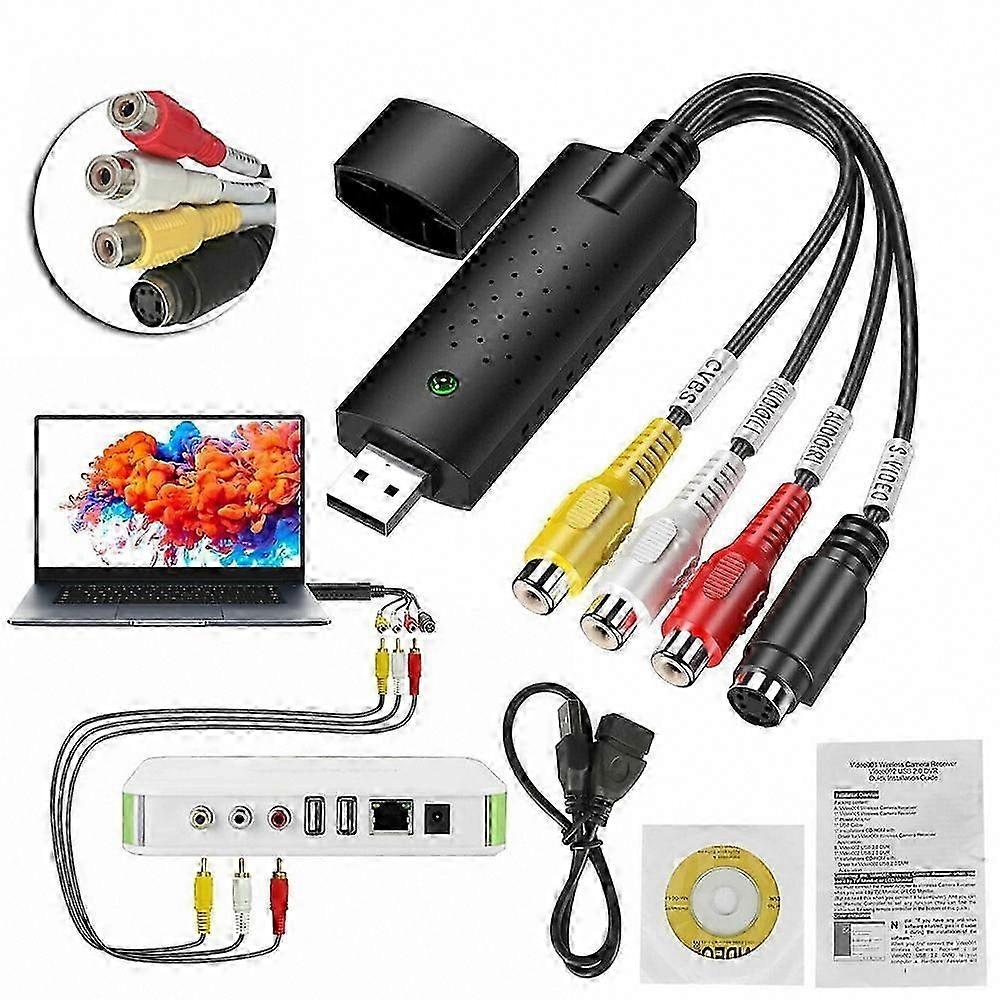 USB 2.0 Audio Video Capture Adapter, VHS to DVD Transfer Tool, AV to Digital Converter for PC, 2 Pieces
