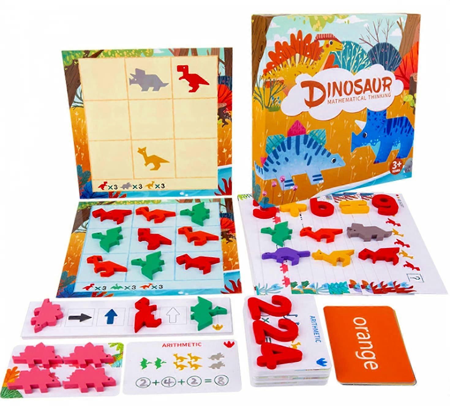 Counting Dinosaurs 119 Piece Educational Set for Kids and Toddlers Turn playtime into a handson math and learning session. This 119 piece set combines colorful dinosaur counters with matching math cards to build counting skills, color recognition, sorting ability, and early arithmetic through guided and openended activities. Key benefits Multiskill learning: Supports counting, number recognition, basic addition, pattern recognition, sequencing, and concept of quantity. Fine motor and focus practice: Small dinosaur counters and sorting tasks help develop handeye coordination and precision. Clear learning pathway: Doublesided math cards present matching tasks and progressive problems such as find the rule, quantity identification, and simple addition. Durable and portable: Compact components are designed for repeated tabletop use and easy storage for travel or classroom centers. Product highlights and attributes Complete set: 119 pieces including colorful dinosaur counters and a set of math/activity cards for guided practice. Materials and construction: Sturdy molded plastic counters and laminated cardstock cards for longlasting classroom and home use. Size and handling: Counters are sized for small hands, making them suitable for toddlers and young children during supervised play. Performance: Cards and counters work together to provide immediate visual feedback and handson reinforcement of math concepts. How children use the set Sorting and color work: Sort dinosaurs by color, count each group, and record results on a card to practice classification and number vocabulary. Guided math activities: Use the cards to match quantities, solve simple addition problems, and build number sentences using the dinosaur pieces. play and creative tasks: Arrange dinosaurs into patterns, create sequences, or invent stories while practicing counting and memory. Practical scenarios Home learning: A parent guides short daily activities to reinforce preschool math skills and build confidence in numbers. Preschool or daycare centers: Small group stations for tabletop counting, sorting, and cooperative games. Travel and quiet time: Compact set provides educational engagement on trips or during waiting periods. What you get One 119 piece counting set with dinosaur counters and math/activity cards ready for immediate use in learning sessions and play.