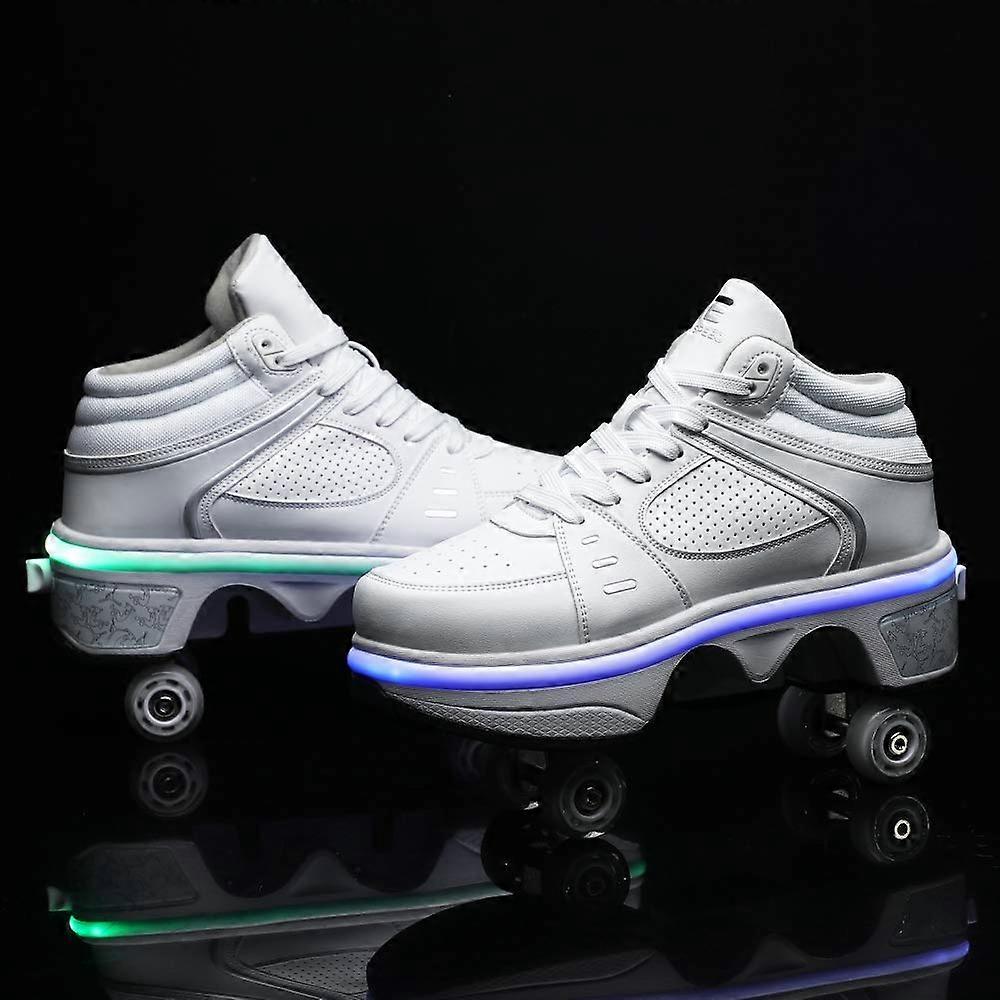 Roller Shoes with Hidden Wheels, 7Color USB Rechargeable LED, Adjustable 2in1 Sneakers White 39