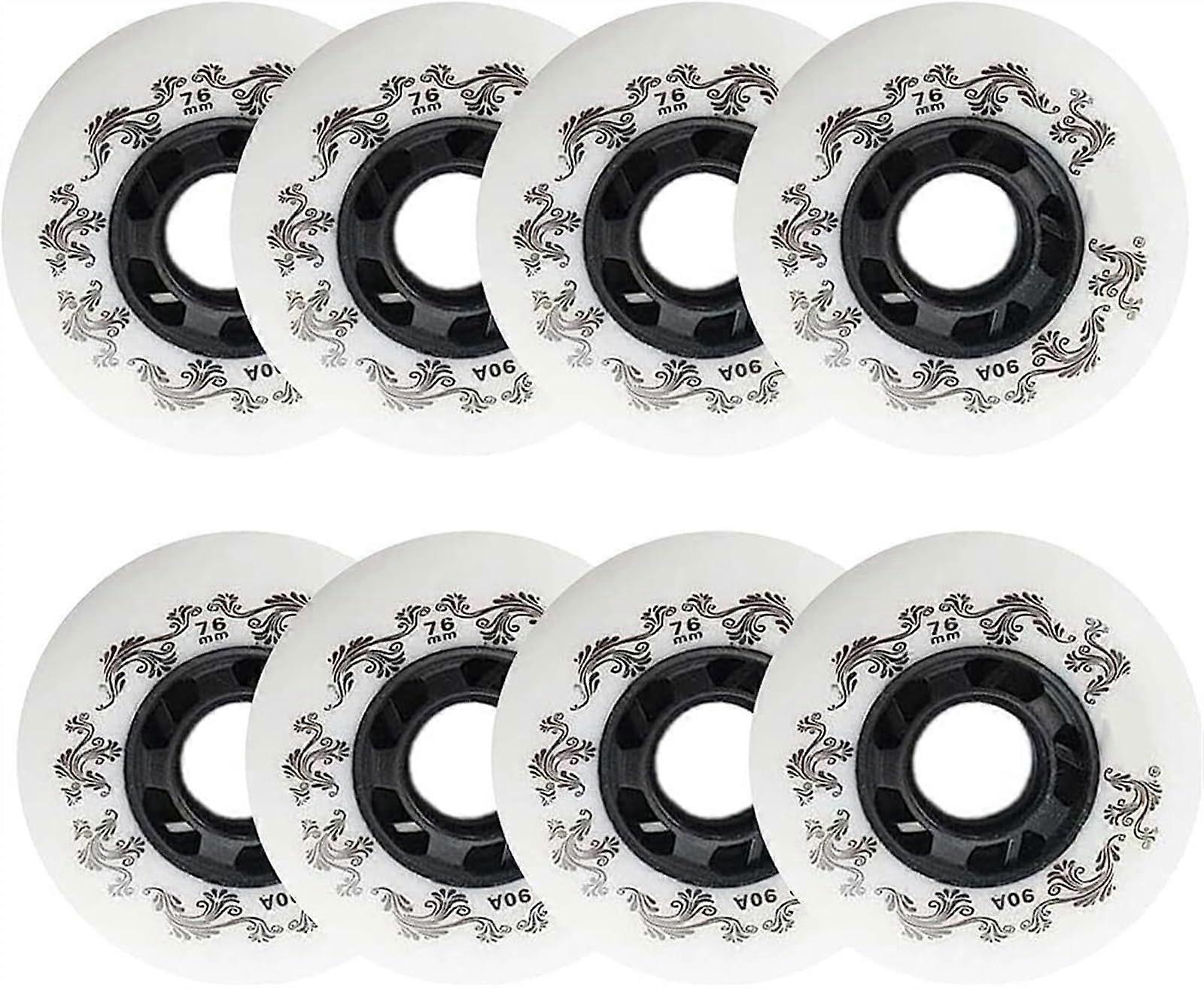 76mm Inline Skate Wheels with Bearings, 90A Outdoor Roller Skate Replacement Wheels, White Set of 8