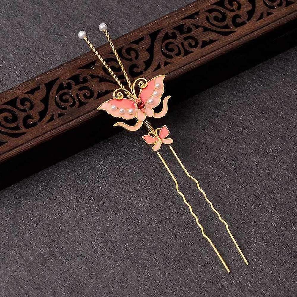 Vintage Butterfly Hair Stick with Antennae Orange Metal Hair Fork Oil Drop Finish for Women Updos