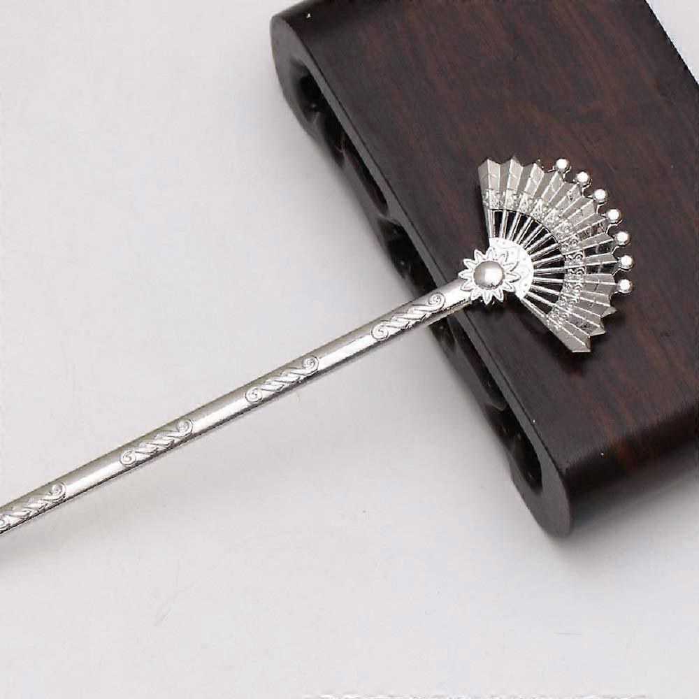 Vintage Bronze Metal Hair Stick for Women, Chinese Fan Hair Pin with Secure Updo Hold Silver