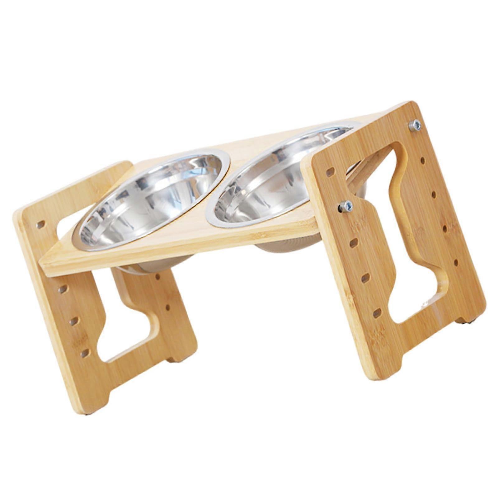 Elevated Dog Bowl with Adjustable Height, Double Bowls and Modern Wood Frame for Dogs and Cats