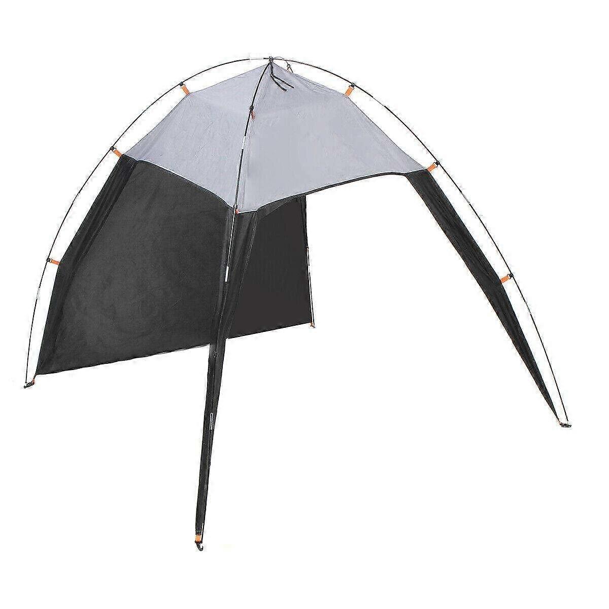 Beach Canopy Tent Sun Shelter Size after opening: approximately 210 x 230 x 160 cm Material: polyester fibre fabric with glass fiber and stainless steel frame Key benefits Provides reliable sun shade for outdoor activities, reducing direct sun exposure during beach days, picnics, and outdoor rest. Sturdy frame construction using glass fiber and stainless steel for improved stability and longer service life compared to singlematerial frames. Lightweight and compact design intended for easy transport on vacation or to outdoor events. Simple footprint and generous interior space make it suitable as a small beach cabana, picnic shelter, or camping canopy. Main features Dimensions: approx. 210 x 230 x 160 cm when opened, offering a sheltered area for seating and stored items. Fabric: polyester fibre offers a balance of durability and ease of cleaning. Frame: combination of glass fiber and stainless steel provides flexibility, support, and resistance to bending under normal outdoor use. Versatile use: designed for beach shelter, sun shade, picnic cover, and general outdoor canopy needs. Practical applications Family beach day: set up a shaded area to shelter coolers, bags, and seating while providing a comfortable rest spot. Park picnic or outdoor event: use as a canopy to protect food and equipment from sun and to create a private gathering area. Camping or day trips: serve as a lightweight sun shelter for daytime relaxation at campsites or lakeside stops. What makes it stand out Balanced material choice: polyester fibre combined with glass fiber and stainless steel frame delivers a durable yet lightweight shelter suited for frequent outdoor use. Clear, functional design focused on essential shelter performance without unnecessary complexity. Sized to cover small groups and equipment while remaining easy to transport and set up. Use and care notes Allow fabric to dry before storage to maintain condition. Inspect frame components periodically for bending or wear and if needed to preserve stability. Intended as a sun shelter and canopy; follow normal precautions for securing the tent in windy conditions.