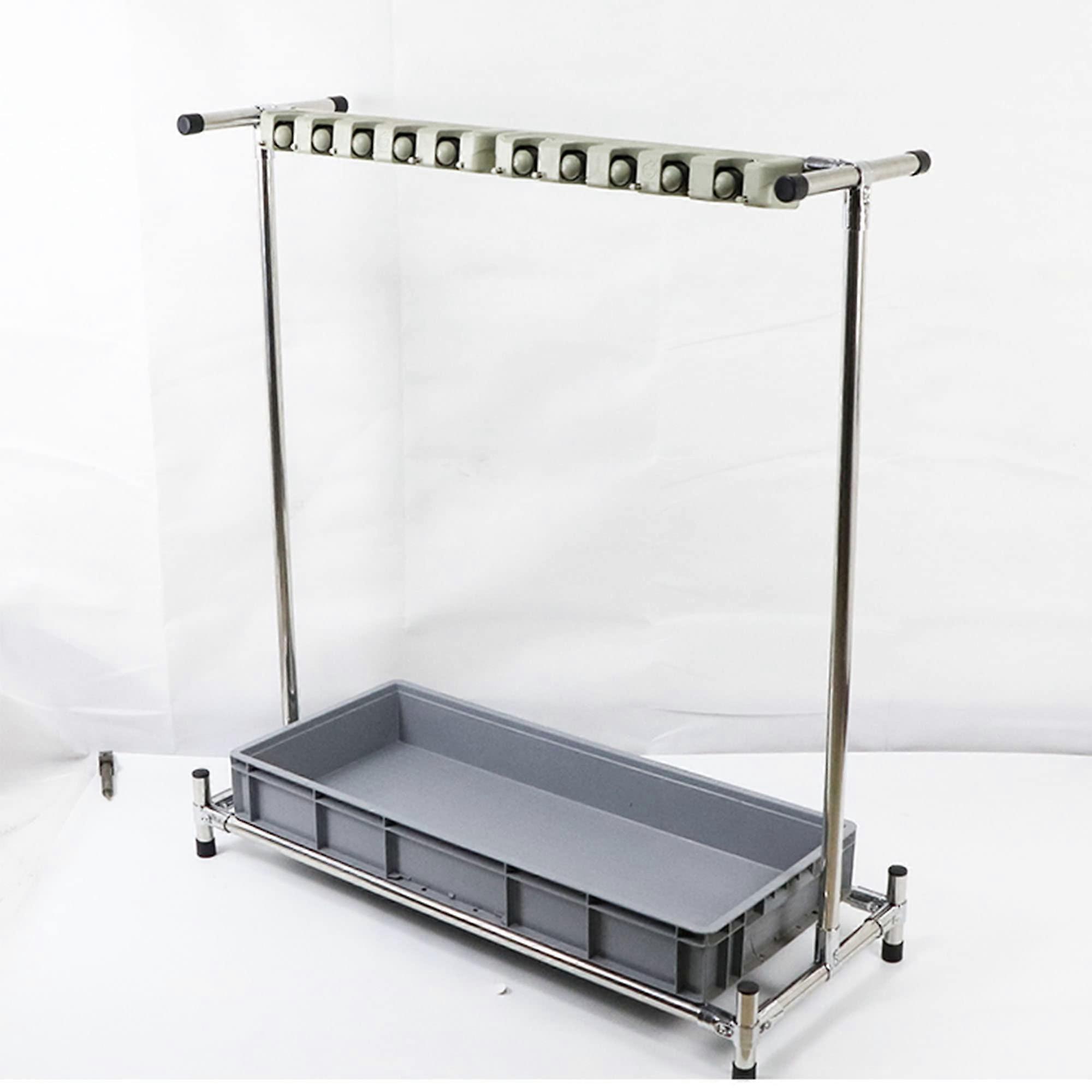 Movable Mop and Broom Holder with 10 Slots, Stainless Steel Commercial Rack, Locking Wheels, Drip Tray