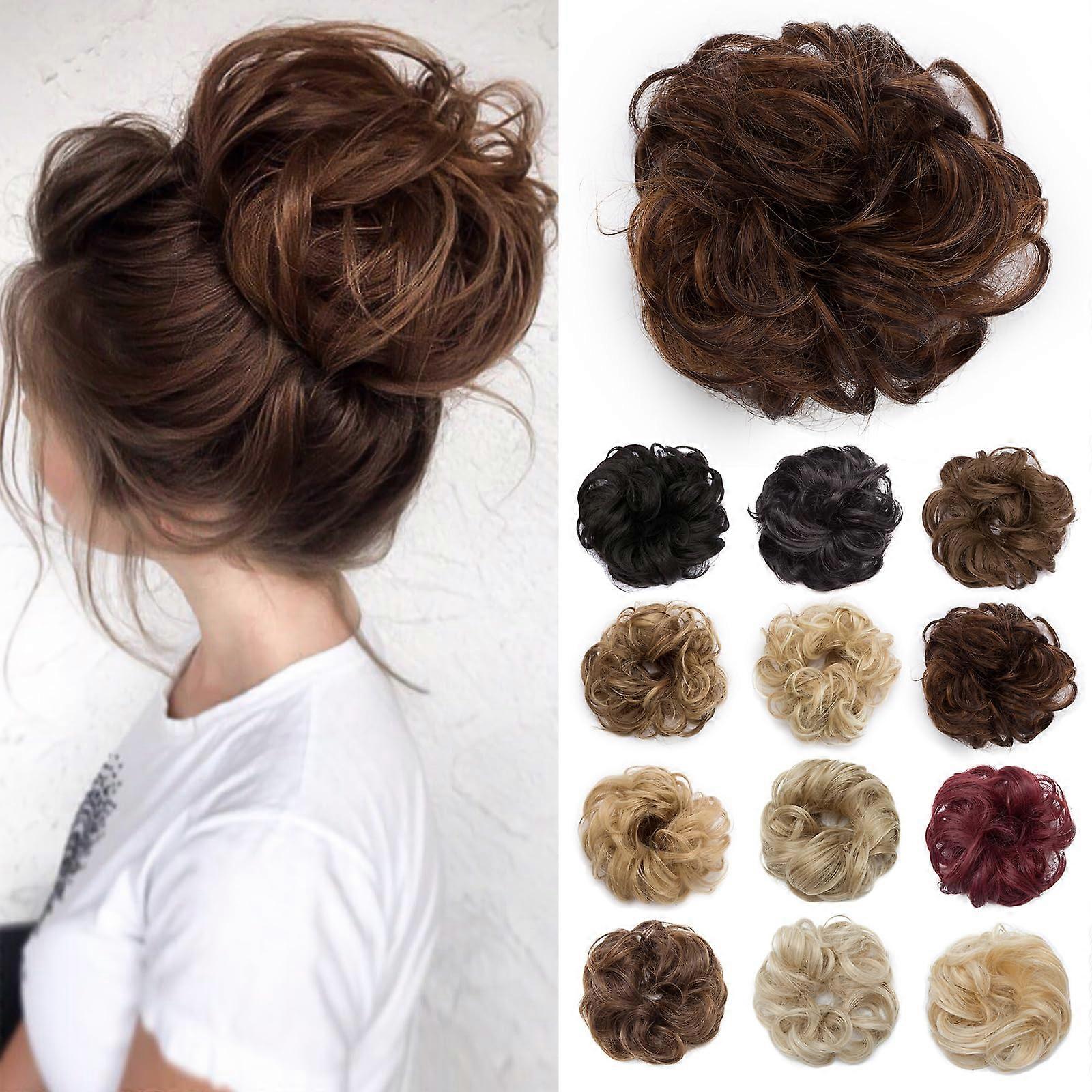 1 pc messy hair bun scrunchy, 25 g Color: light auburn mix light ash brown (25 g) Product overview This synthetic hair scrunchy creates a naturallooking messy bun in seconds. Made from heatresistant synthetic fiber that closely resembles human hair, it blends with real hair to add volume and texture without complicated styling. Key benefits Instant volume: Transforms short or thin ponytails into a full, textured bun for a finished look in moments. Easy to use: Integrated elastic rubber band allows quick placement and secure hold for most hair types and lengths. Natural appearance: Heatresistant synthetic fiber is designed to match hair movement and texture for a realistic look. Low maintenance: Lightweight design (25 g) stays comfortable for allday wear and can be repositioned as needed. Features and specifications Quantity: 1 piece Weight: 25 g Color: light auburn mix light ash brown Material: heatresistant synthetic fiber that resembles human hair Fastening: builtin elastic rubber band for easy application and secure fit Size compatibility: suitable for most people and hair types; works well with short, medium, and long hair How it solves common styling problems Adds instant fullness to thin or flat ponytails without teasing or backcombing. Saves time when you need a polished updo but have limited styling skills or time. Hides weak or short bun bases for a consistent, neat finish. Practical use scenarios Everyday styling: Create a casual messy bun for work, errands, or relaxed weekends in under a minute. Special events: Add volume and texture to an updo for weddings, proms, or evening occasions without professional styling. Costume and themed events: Use as part of a look for Halloween, carnivals, or holiday parties where quick, reliable styling is needed. Care and styling notes Gently detangle by hand or with a widetooth comb. The fiber is heatresistant; apply low to medium heat if light styling is required. Avoid excessive heat to prolong product life. Store on a hanger or flat surface to maintain shape. This scrunchy is a practical accessory for anyone looking to add volume, simplify hairstyling, and achieve a natural messy bun quickly and reliably.