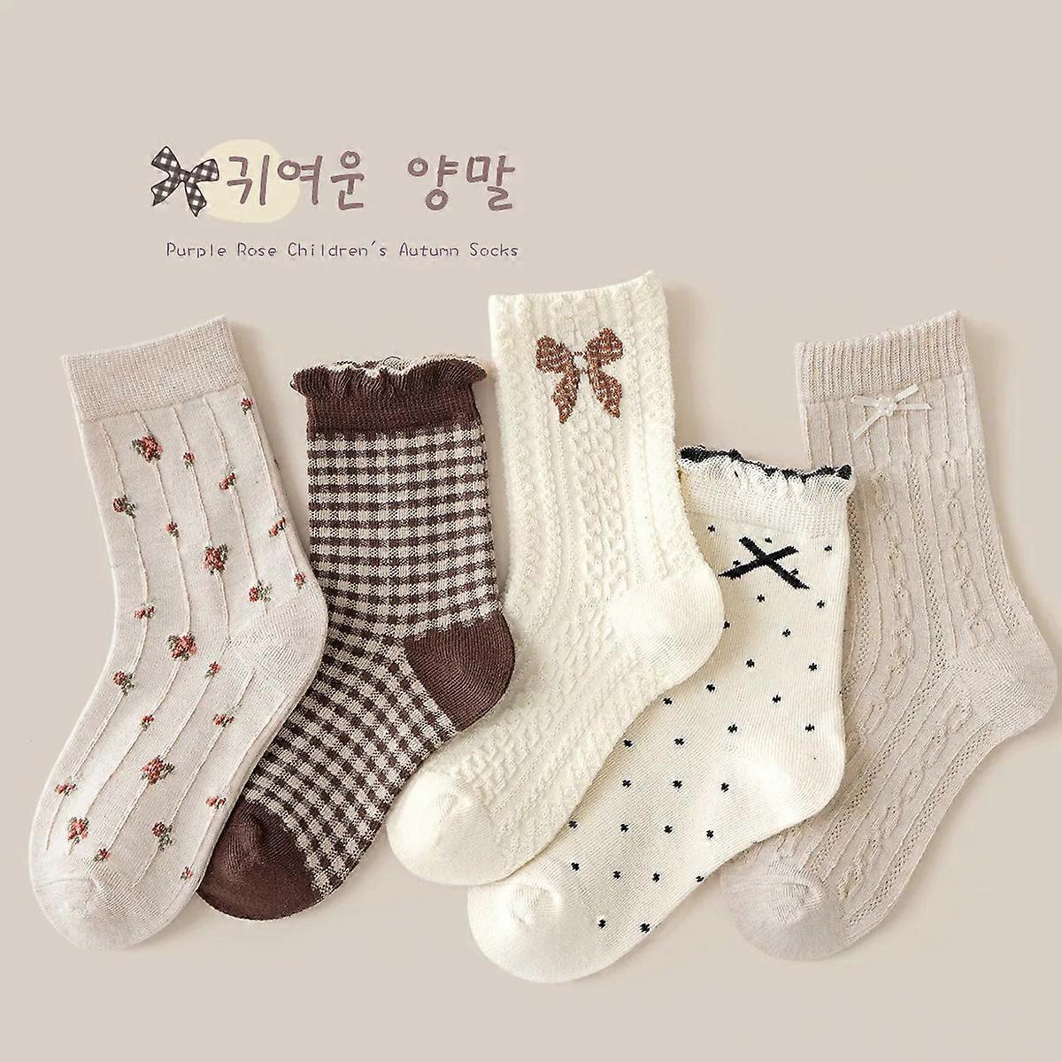Auutumn Winter Girls Socks Retro Maillard Color Ruffle Socks Children's Calf Socks Cotton Socks 5 Pairs