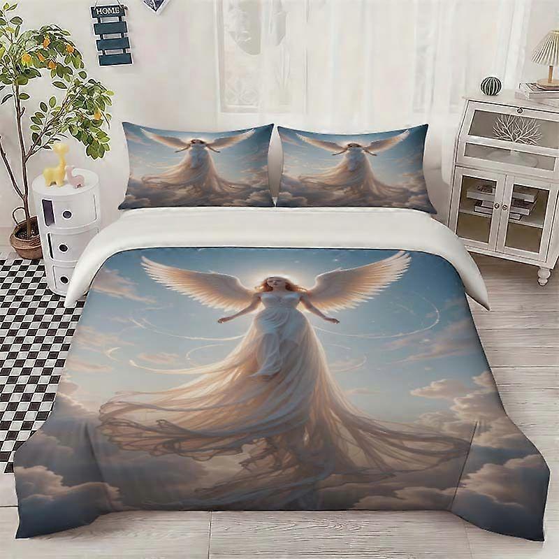 Holy Angel Spreading Wings Blue Sky Fantasy Art Painting Theme Bedding ThreePiece Set Duvet Cover Pillowcase Set