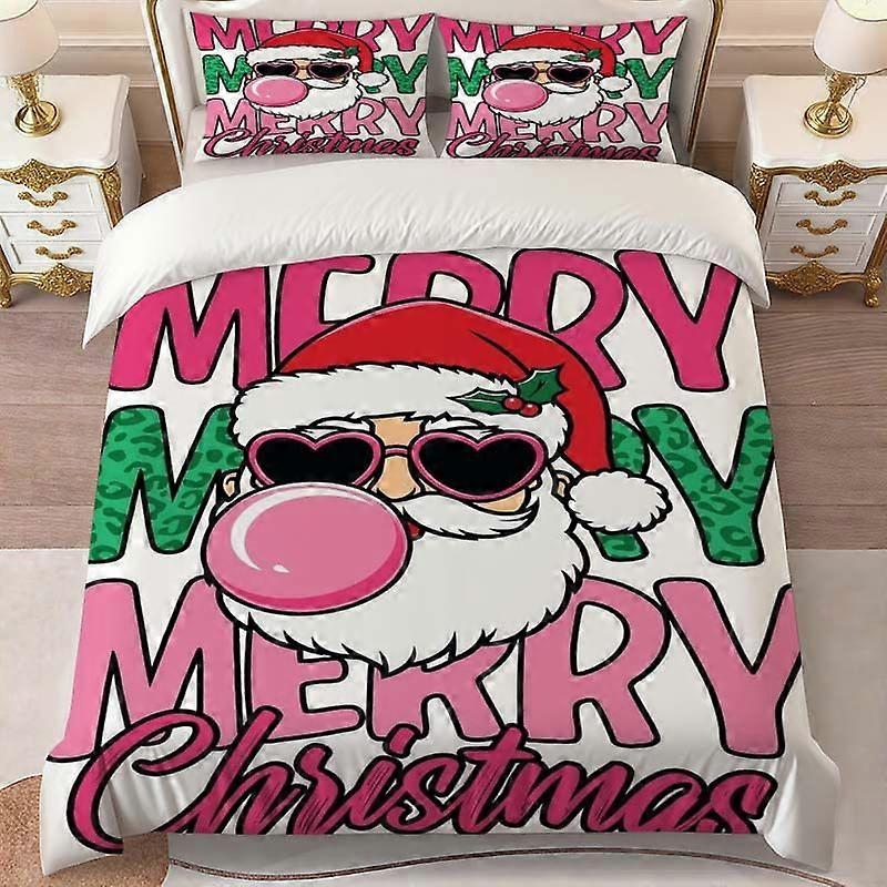 Santa Claus Heart Fashion Glasses Print Bedding Set Soft Duvet Cover and 2 Pillowcases
