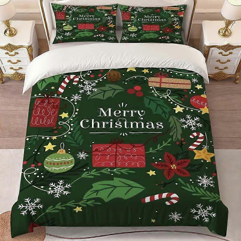 Merry Christmas Greeting Poster Theme Print ThreePiece Bedding Set Soft Duvet Cover And Two Pillowcases