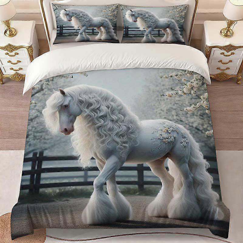 Dream Horse Art Print Bedding Set Featuring Exquisite Patterns Including a Duvet Cover and Two Pillowcases. Soft and Comfortable