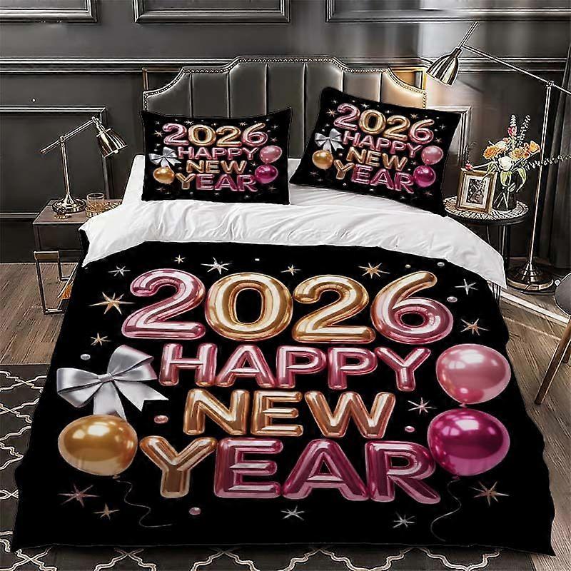 Happy New Year 2026 Themed Bedding Set Duvet Cover and Pillowcase Set