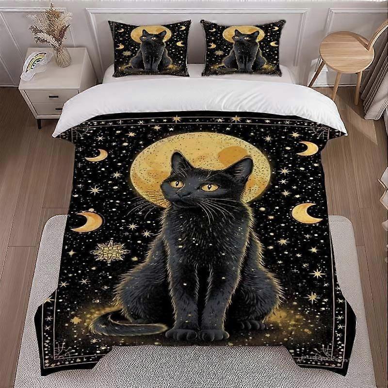 3pcs Mysterious Black Cat Illustration Bedding Set (Duvet Cover And Pillowcase Set). Soft And Comfortable Suitable for All Seasons
