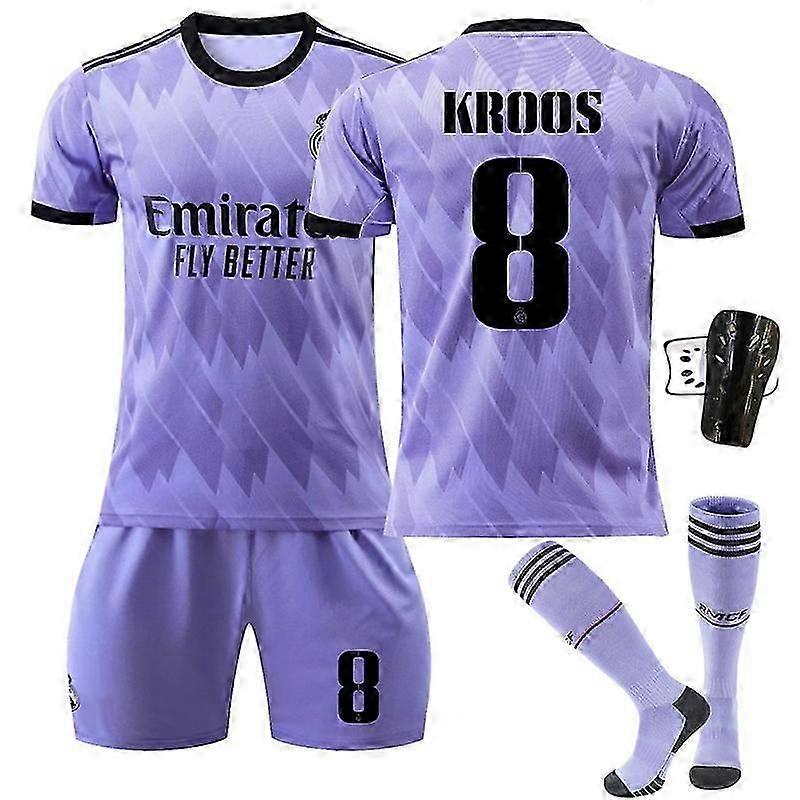 Football Uniform Set Design Number 8 Purple Modern Team Style Jersey Shorts Socks and Protective Gear Set