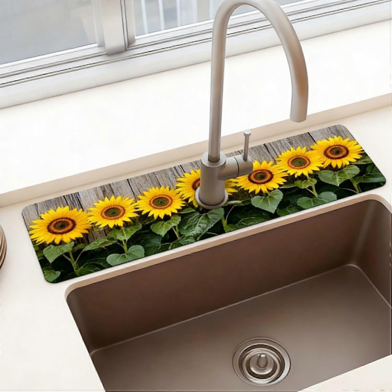 sunflower Sink Splash Guard Faucet Draining Mat for Kitchen Sink Vintage Colorful Spring Floral Super Absorbent Fast Drying Mat Sink Splash Guard Behi