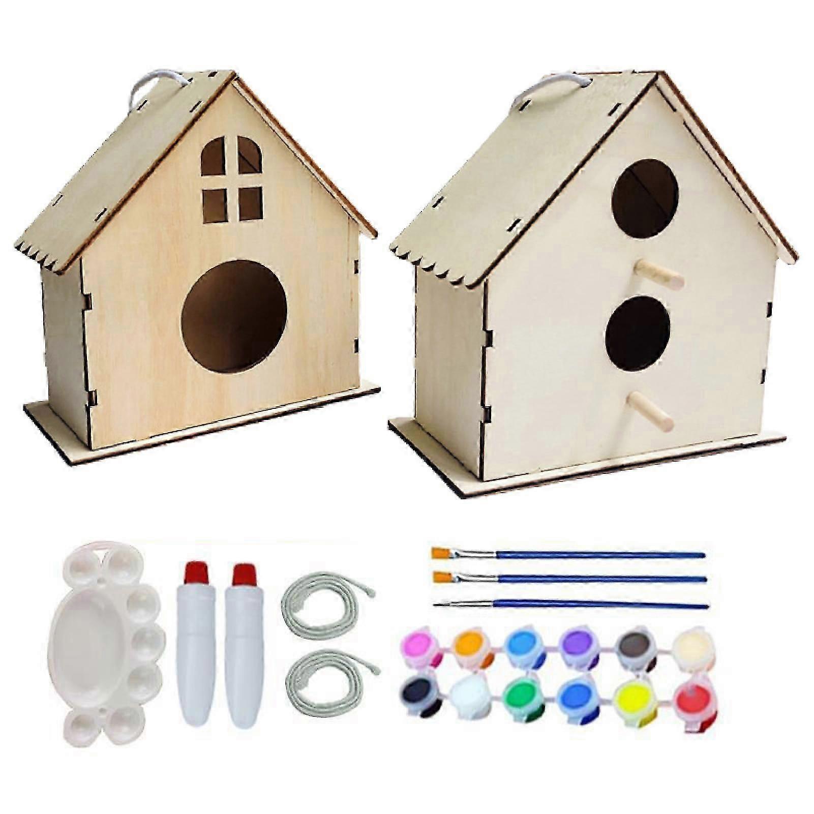 2Pcs/Set DIY Crafts Bird House Kit Birdhouse Wood Arts with Paints Brushes compatible Girls Boys Toddlers Ages 3-12 kaesi SH