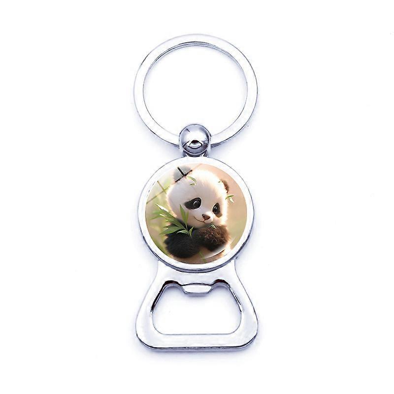 Cute bamboo panda bottle opener keychain small commodity metal key pendant beer bottle opener