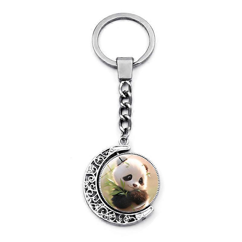 Bamboo Leaf Panda Keychain Bag Charm Double-Sided Rotating Cute Panda Pendant Keychain Ornament
