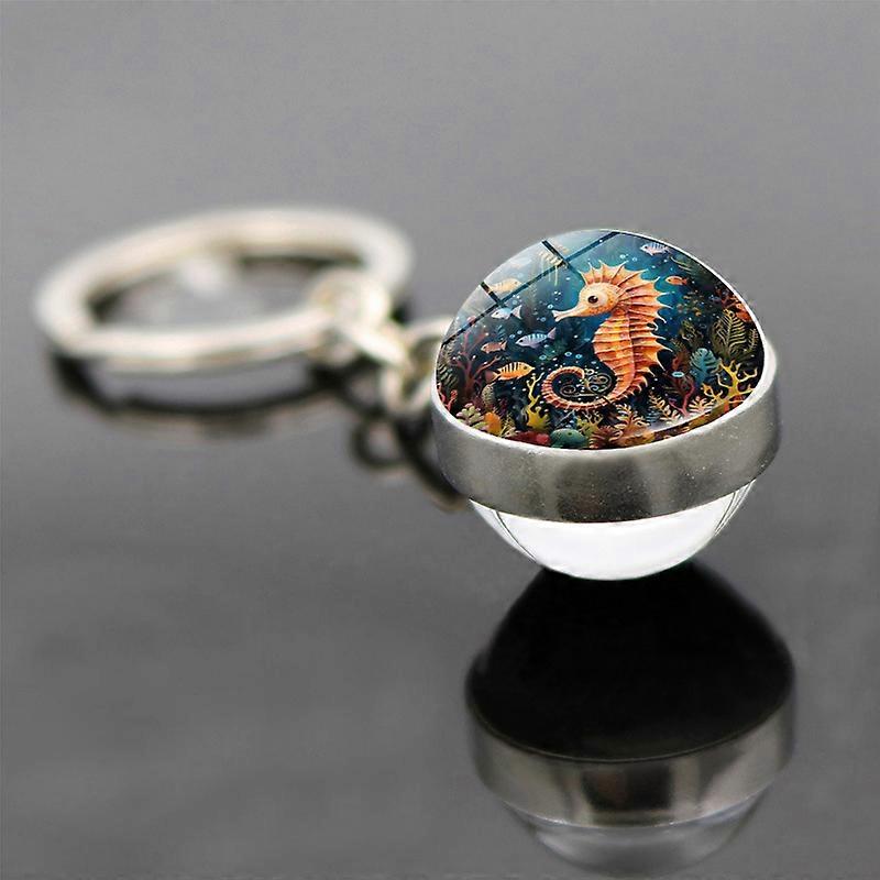 Marine life dolphin starfish keychain pendant small commodity double-sided ball pendant travel gift