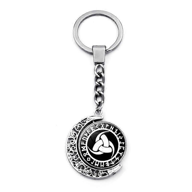 Nordic Viking Rune Compass Keychain Pendant Double-Sided Rotating Moon Pendant Viking Thor's Hammer Keychain