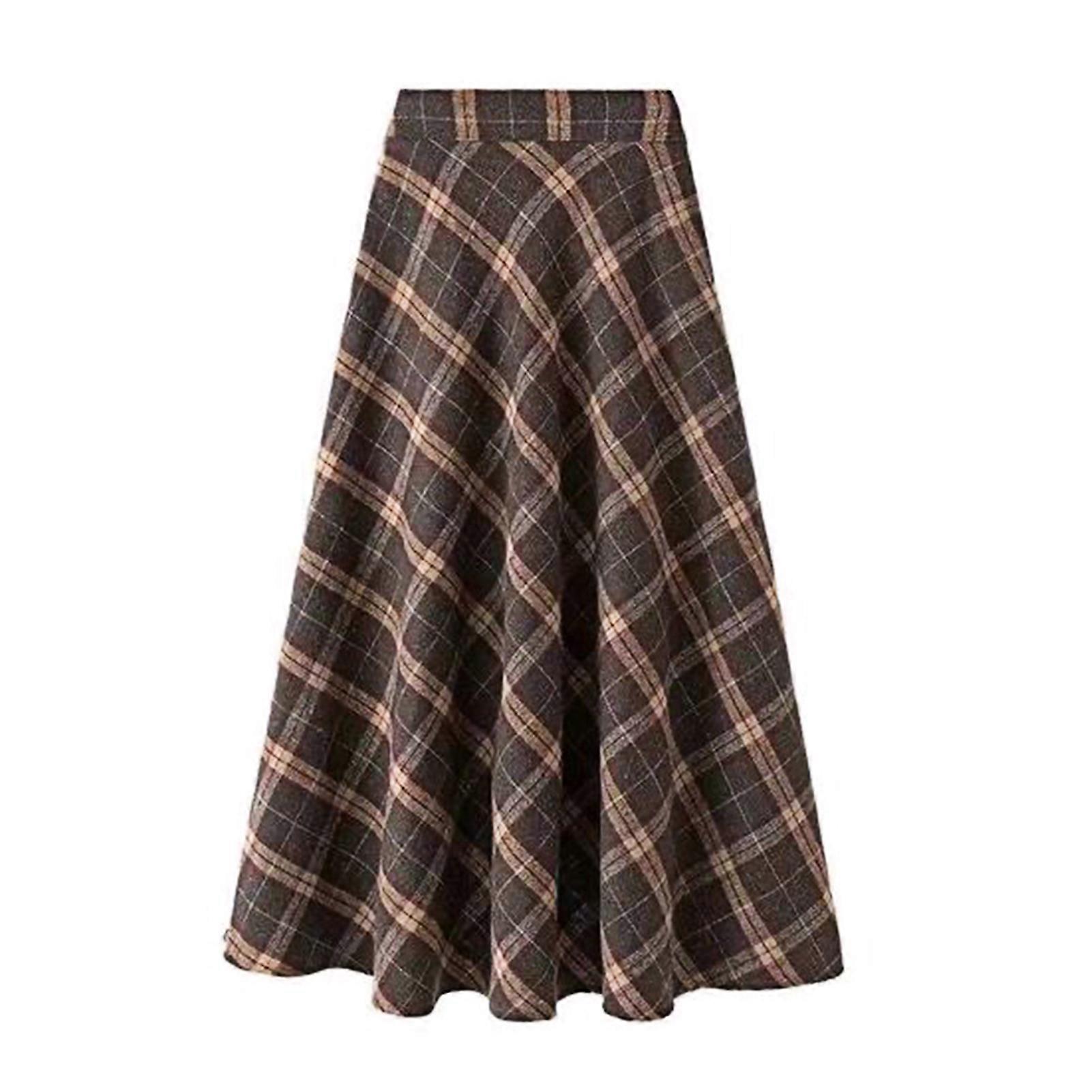Women Midi Skirt Elastic High Waist Plaid Print Skater Skirt A-Line Large Hem Casual Skirt Commuting