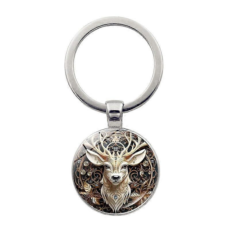 Vintage reindeer car keychain pendant, time gemstone deer head pendant, accessory gift