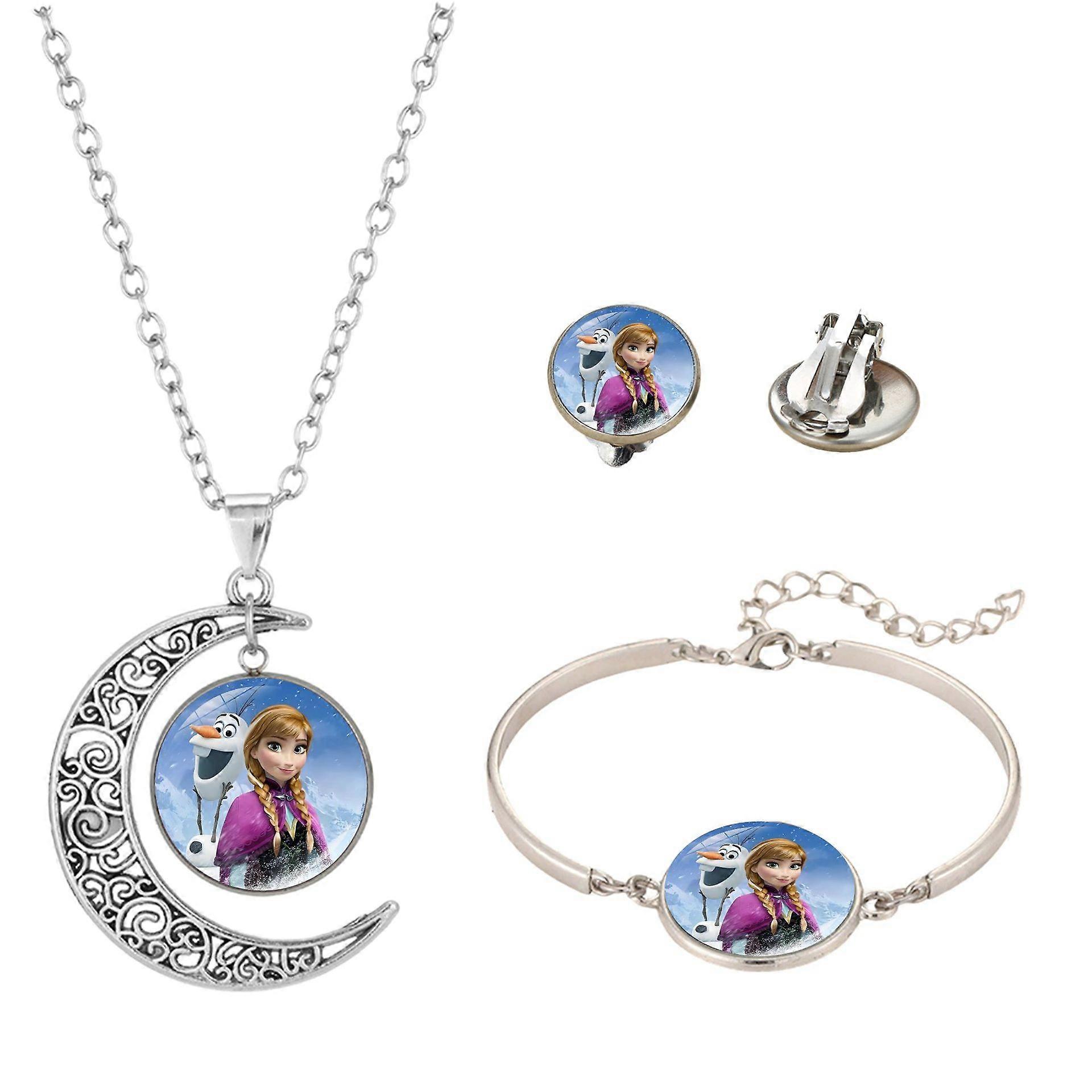 Frozen Time Gems Elsa and Anna Princess Cartoon Necklace Bracelet Earrings Three-Piece Jewelry Set