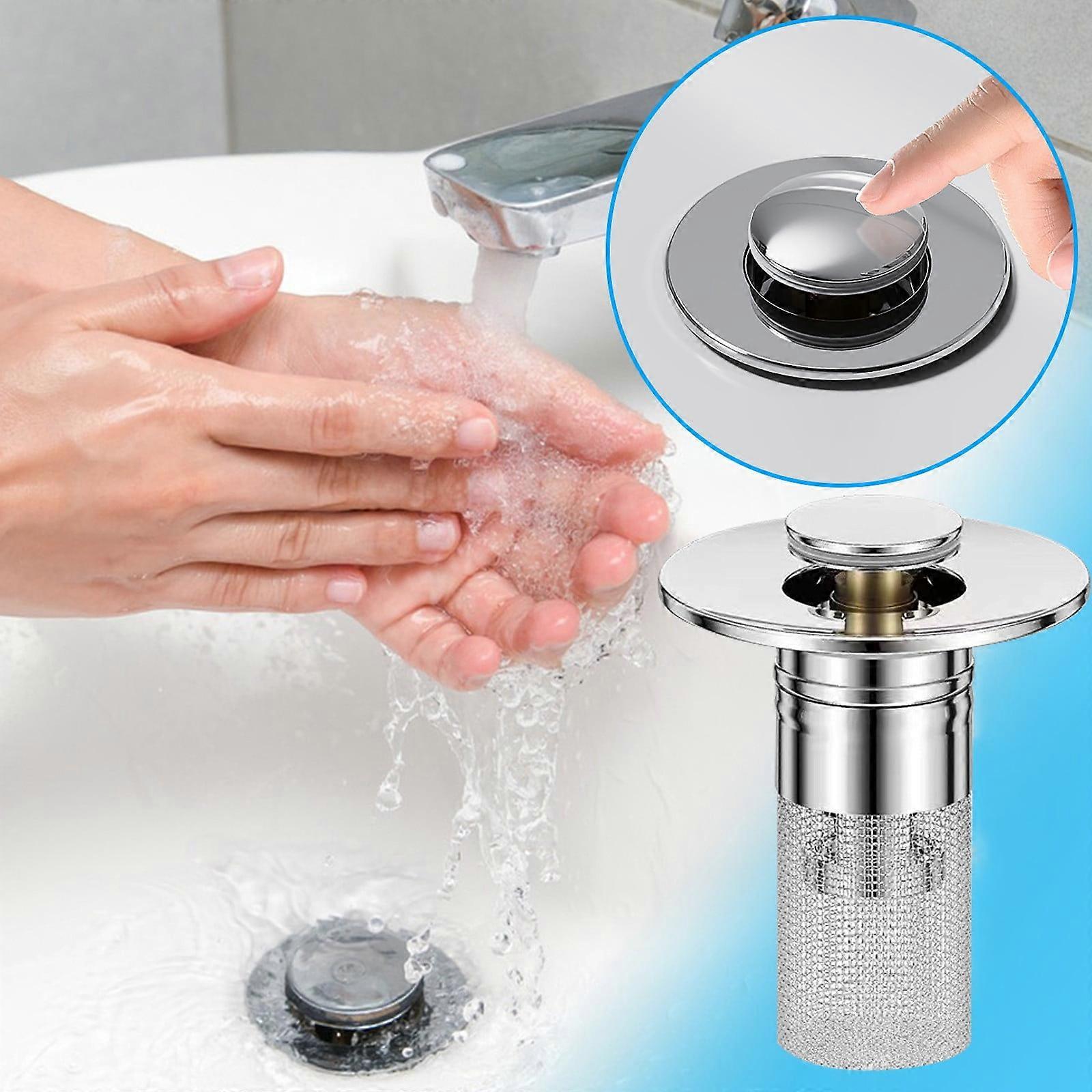 Donemore Universal Sink Plug Compatible with Bathroom Wash Basins - Bounce Push Drain Stopper with Anti-Clog Strainer, Brass Core