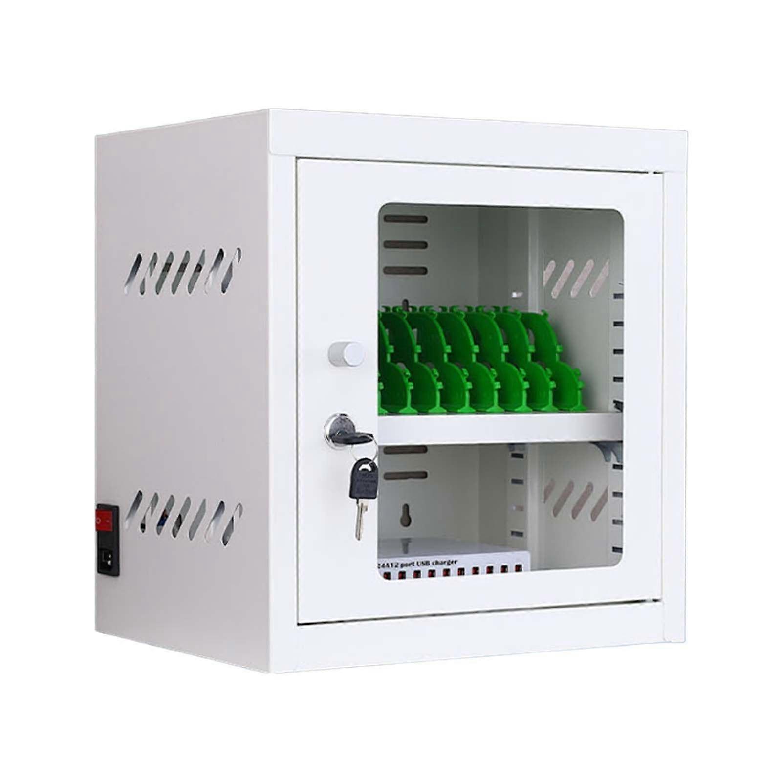 Rechargeable Mobile Phone Storage Cabinet Keep phones secure, organized, and charged during seminars, exams, meetings, or training sessions. This cabinet stores multiple devices while providing fast, reliable USB charging and tidy cable management so participants can focus without distraction. Key benefits Secure storage and charging: Lockable cabinet protects devices while they charge. Ideal for classrooms, meeting rooms, and training centers. Fast, reliable USB charging: Each port supplies 5V and up to 2A for efficient charging without needing separate adapters. Neat cable management: Builtin partitions and cable management strips prevent tangled cords and improve airflow. Flexible placement and mobility: Use as a floorstanding unit, wallmount it, or roll it between rooms on casters. No assembly required. Main features Model name: mobile phone charging cabinet Materials: cold rolled steel, tempered glass, ABS partitions Color: silver white USB output per port: 5V, 2A max Total output power by model: 12 slots: 120W 20 slots: 200W 30 slots: 300W 40 slots: 400W 50 slots: 500W 60 slots: 600W Builtin USB ports and integrated power supply eliminate the need for individual adapters Partitioned slots for device separation and improved heat dissipation Key lock for security and four casters for easy transport Arrives fully assembled with predrilled wallmount holes for optional installation Dimensions and weights 12 slots: 33 x 27 x 36 cm, 7.9 kg 20 slots: 58 x 27 x 43 cm, 12 kg 30 slots: 58 x 27 x 61 cm, 17 kg 40 slots: 58 x 27 x 61 cm, 19 kg 50 slots: 58 x 27 x 79 cm, 25 kg 60 slots: 58 x 27 x 79 cm, 26 kg Why this product solves common problems Reduces distraction: Devices are stored and charging out of sight during exams or presentations. Saves time and avoids confusion: Centralized charging prevents lost adapters and mismatched cords. Keeps devices ready: Fast 5V 2A charging ensures devices regain usable power more quickly than many older chargers. Protects devices during transit: Lockable cabinet and casters allow safe movement between rooms. Typical applications Classrooms and examination halls: Secure phones during tests and lectures to maintain focus and fairness. Meeting and conference rooms: Store participant devices during presentations or workshops to reduce interruptions. Libraries, training centers, and shared workspaces: Provide a single, organized charging station for visitors and staff. Packing list Portable Mobile Phone Charging Cabinet x 1 User Manual x 1 Matters needing attention 1. Do not disassemble the unit or expose it to temperatures. 2. If the equipment is stored for a long time without charging, unplug the power socket. 3. To prevent electric shock, do not expose the product to rain or moisture. 4. Do not use this product to charge electronic devices that exceed the specified charging limits. Technical notes The partition design supports heat dissipation while devices charge. Cable management slots and a charging basket keep cords organized even when fully loaded. Two placement options are available: floorstanding or wallmounted. The unit is supplied fully assembled with wallmounting holes preinstalled. This rechargeable mobile phone storage cabinet provides a practical, secure, and organized solution for settings that require temporary device storage and centralized charging.