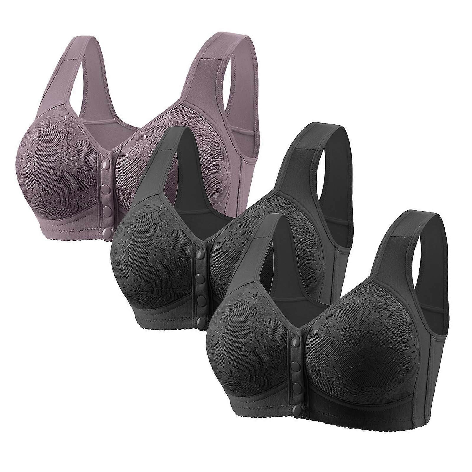 Bras for Women No Underwire,Push Up Bra,3 Pack Plus Size Front Closure Bralettes Wireless Lightly Lined Comfortable Set Multicolor