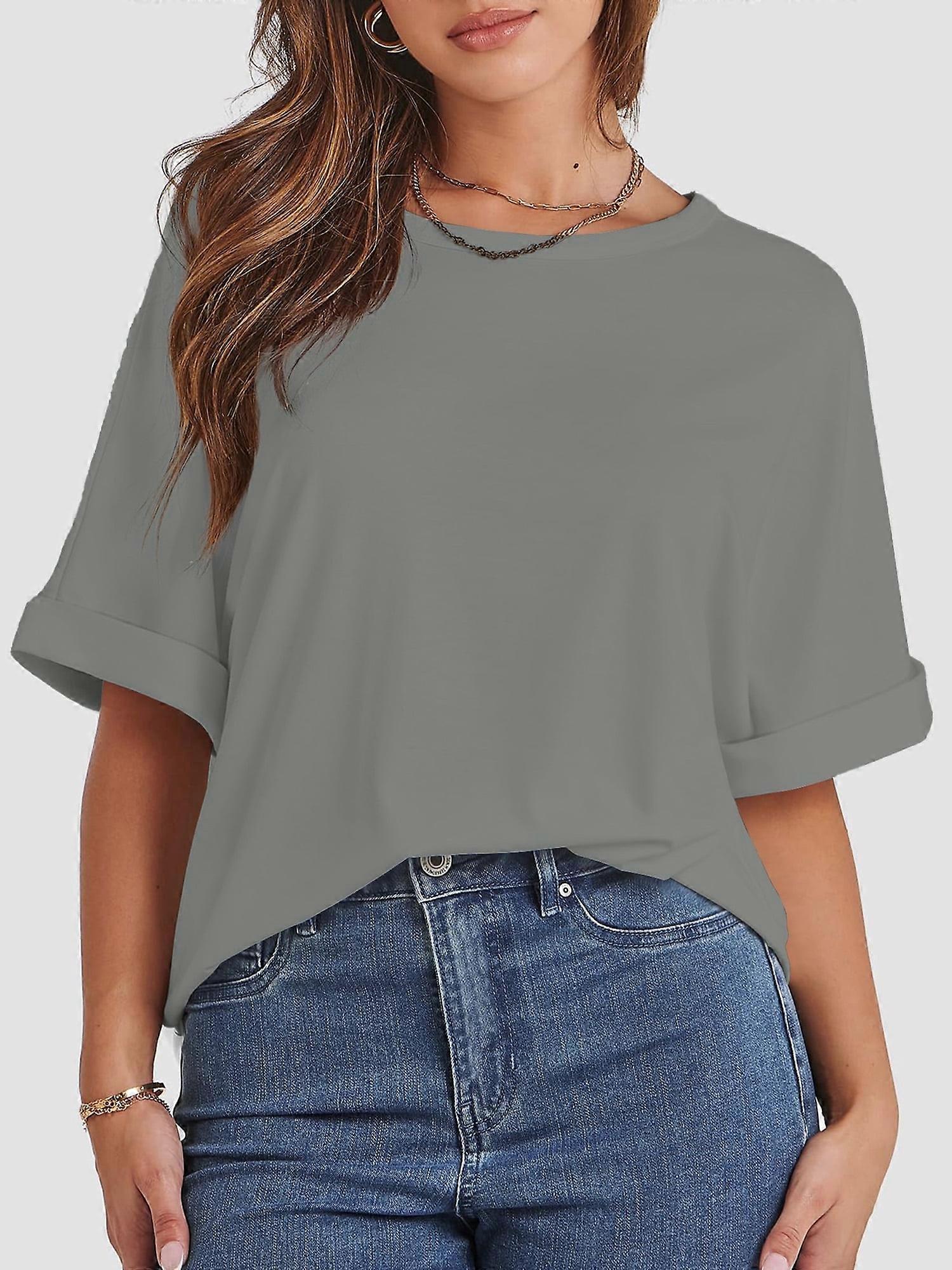 Women's Oversized T Shirts Short Sleeve Crewneck Summer Tops Casual Loose Basic Tee Shirts Trendy Clothes