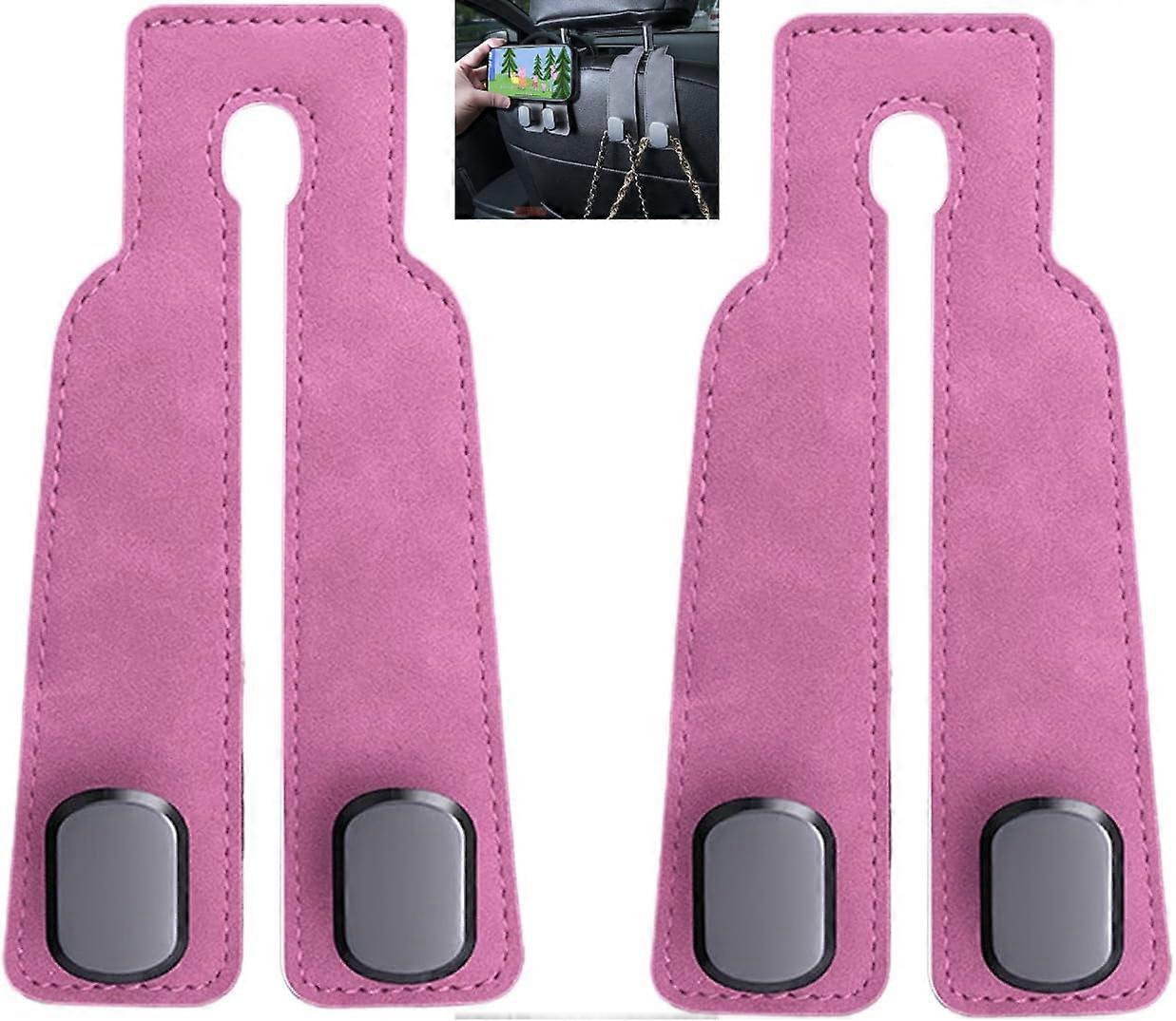 Coozyland Car Hooks – Twinhook Leather Headrest Hangers, Universal Double Hook for Car Seat Back, Metal & Leather Bag Holder (2pcs, Pink)