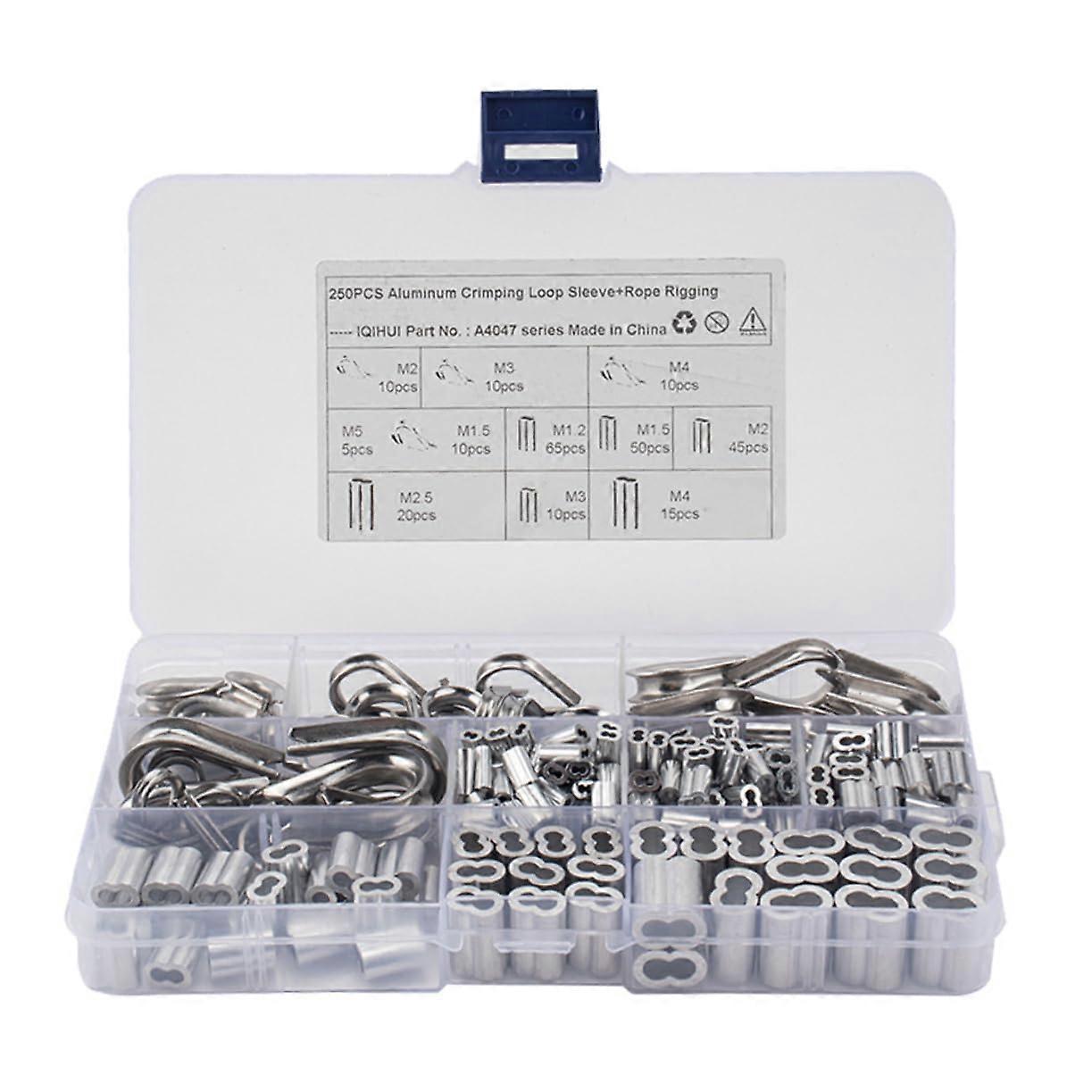 250pcs Stainless Steel Wire Rope Crimp Sleeves and Aluminum Loop Connectors for Secure Terminations