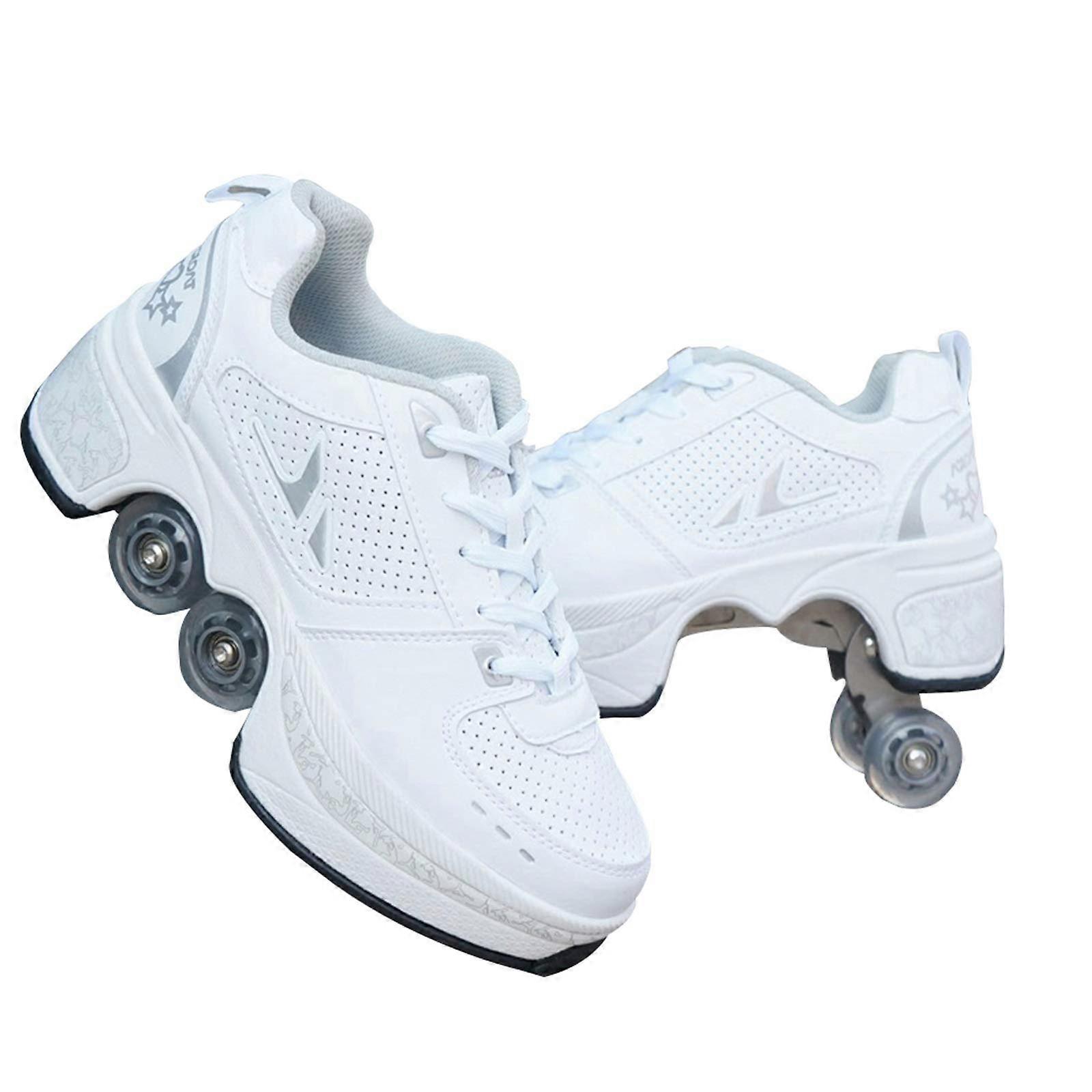 2 in 1 Roller Skate Shoes with Hidden Wheels and OneButton Control, Adjustable 4 Wheel Boots Size 37