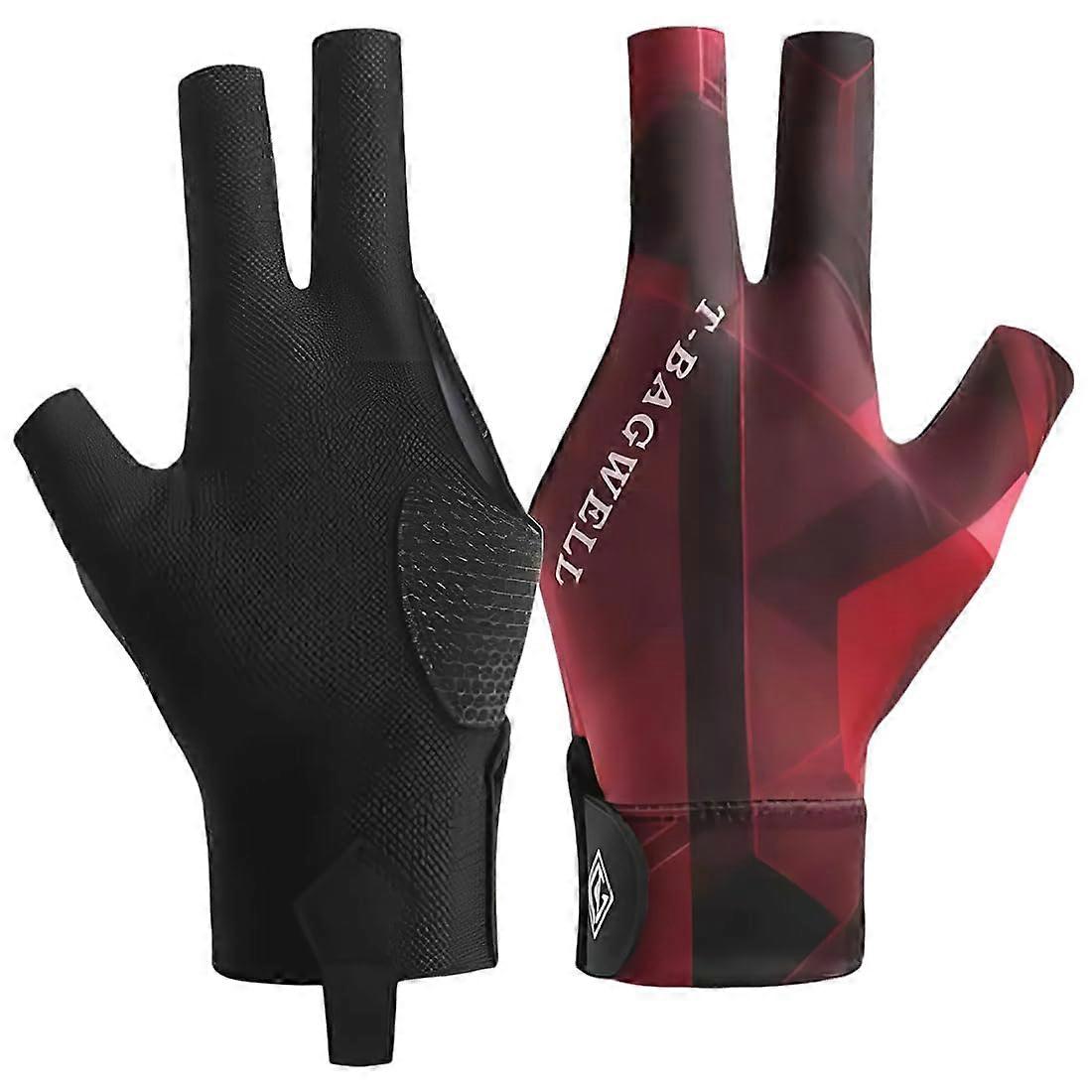 Set of 2 Professional 3 Finger Billiard Gloves with Adjustable HookandLoop Closure Black Red