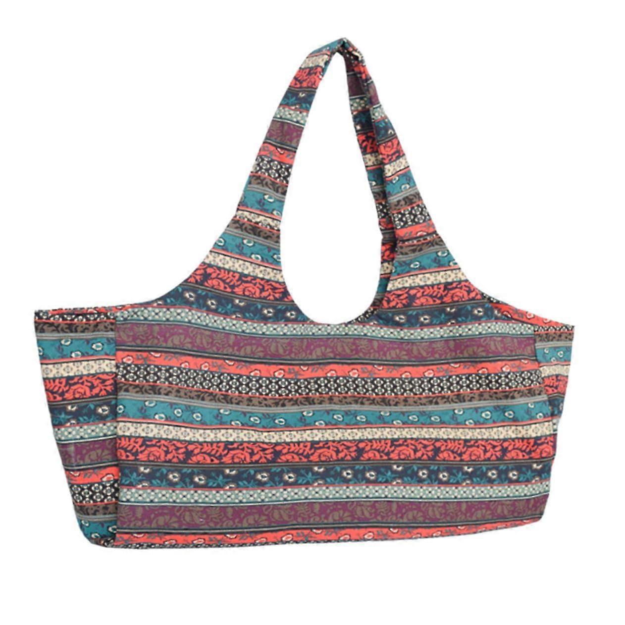 Yoga Mat Bag Large Capacity Printed Canvas with Shoulder Strap and Side Pocket Ethnic Style